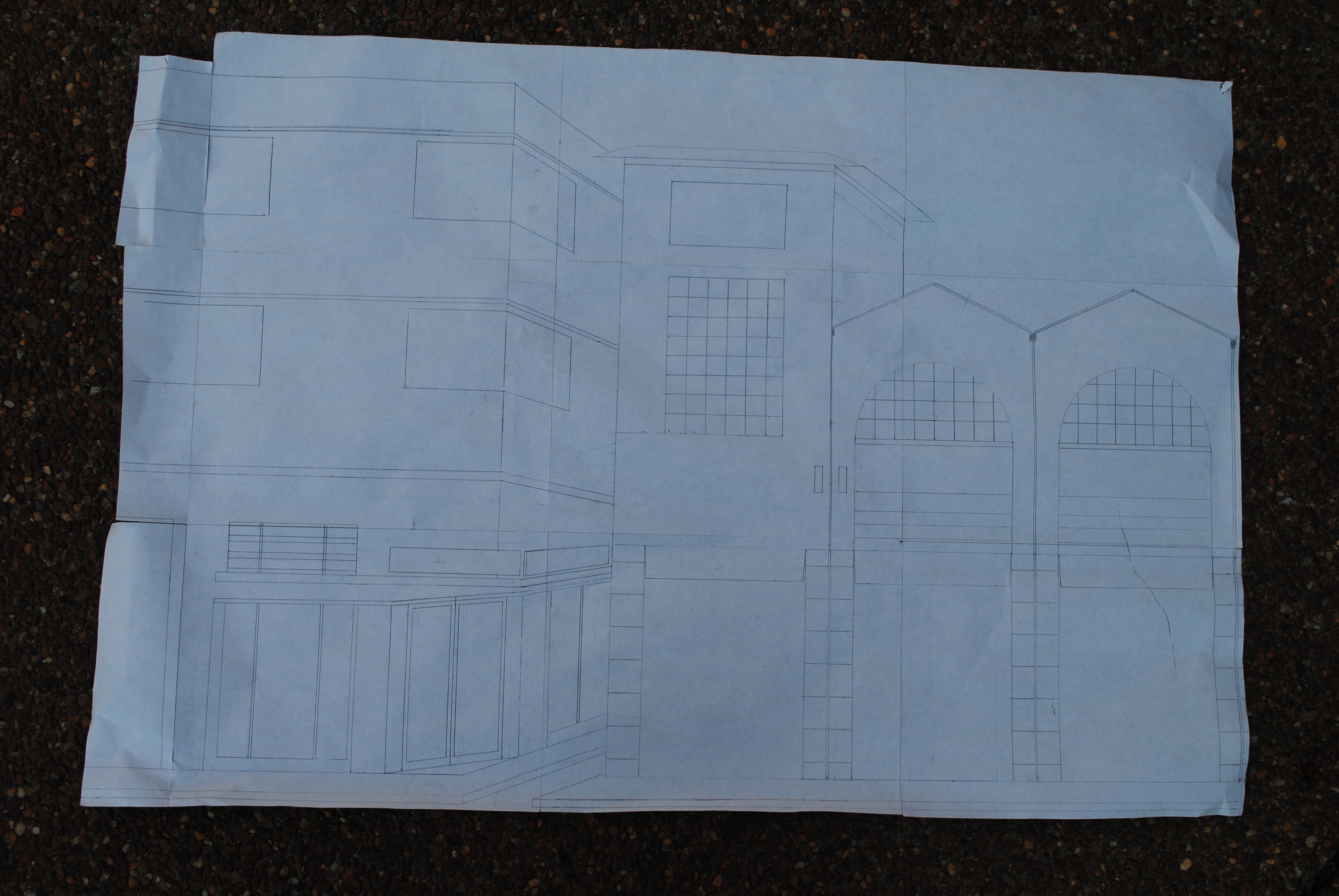 Confident in the expression that “the third time is the charm” would lead to my best painting yet, I set out on my task. Returning to my “artist license” that I had used on my second photo, I created my own street scene by combining the Peet’s Coffee shop with one of the most interesting looking buildings I had encountered. Having become skilled in my technique, I drew out the buildings on paper and then transcribed the pencil drawing to the canvas.