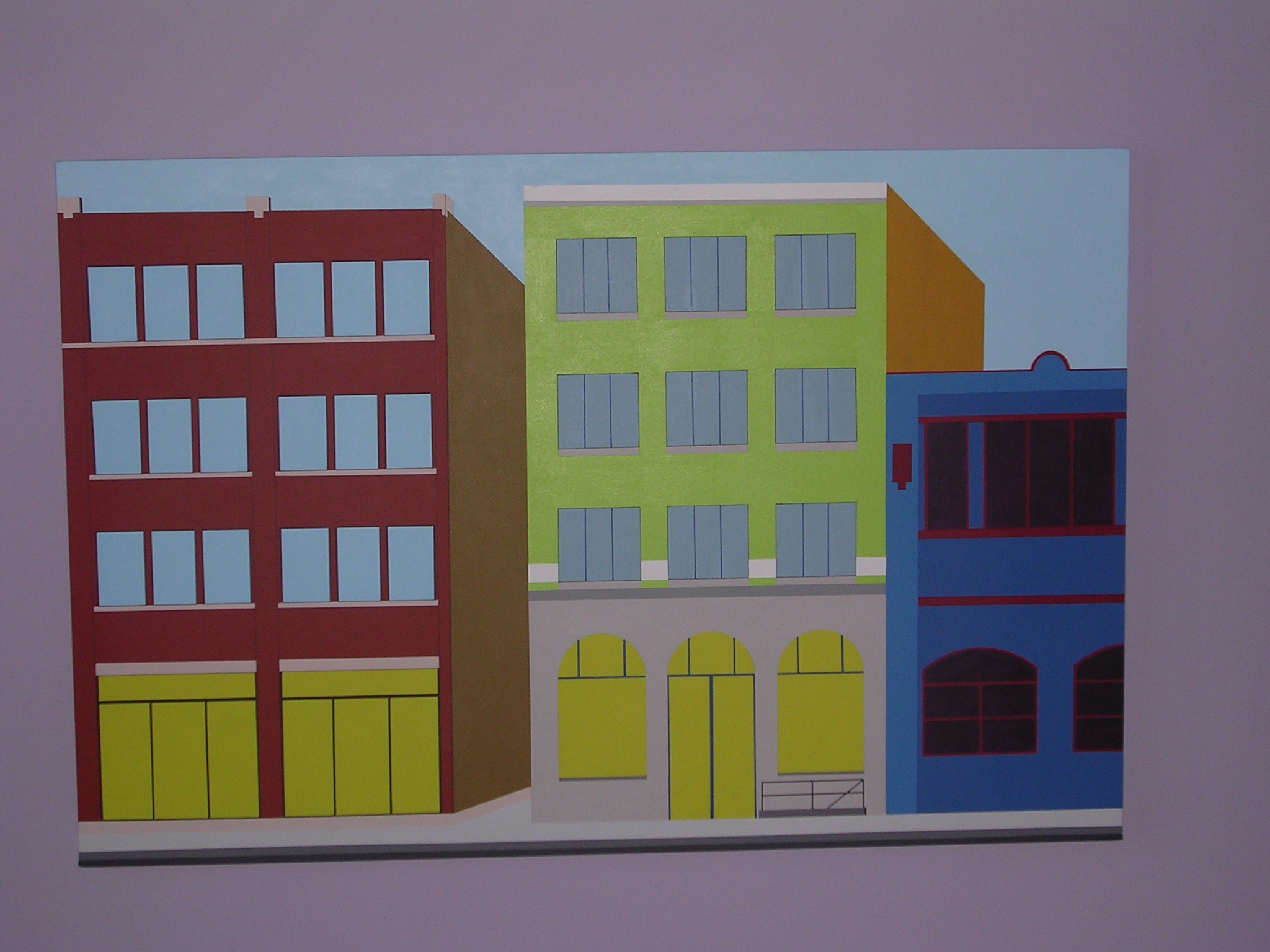 I wanted to increase the scale of this painting but stay with a 24 X 36 canvas so I limited my selection to just two buildings. And since this painting was specifically for my daughter, at least one of the buildings should hold some significance for her. That part actually turned out to be very easy, as fortunately I had photographed a building that she frequented on at least a weekly if not daily basis.
