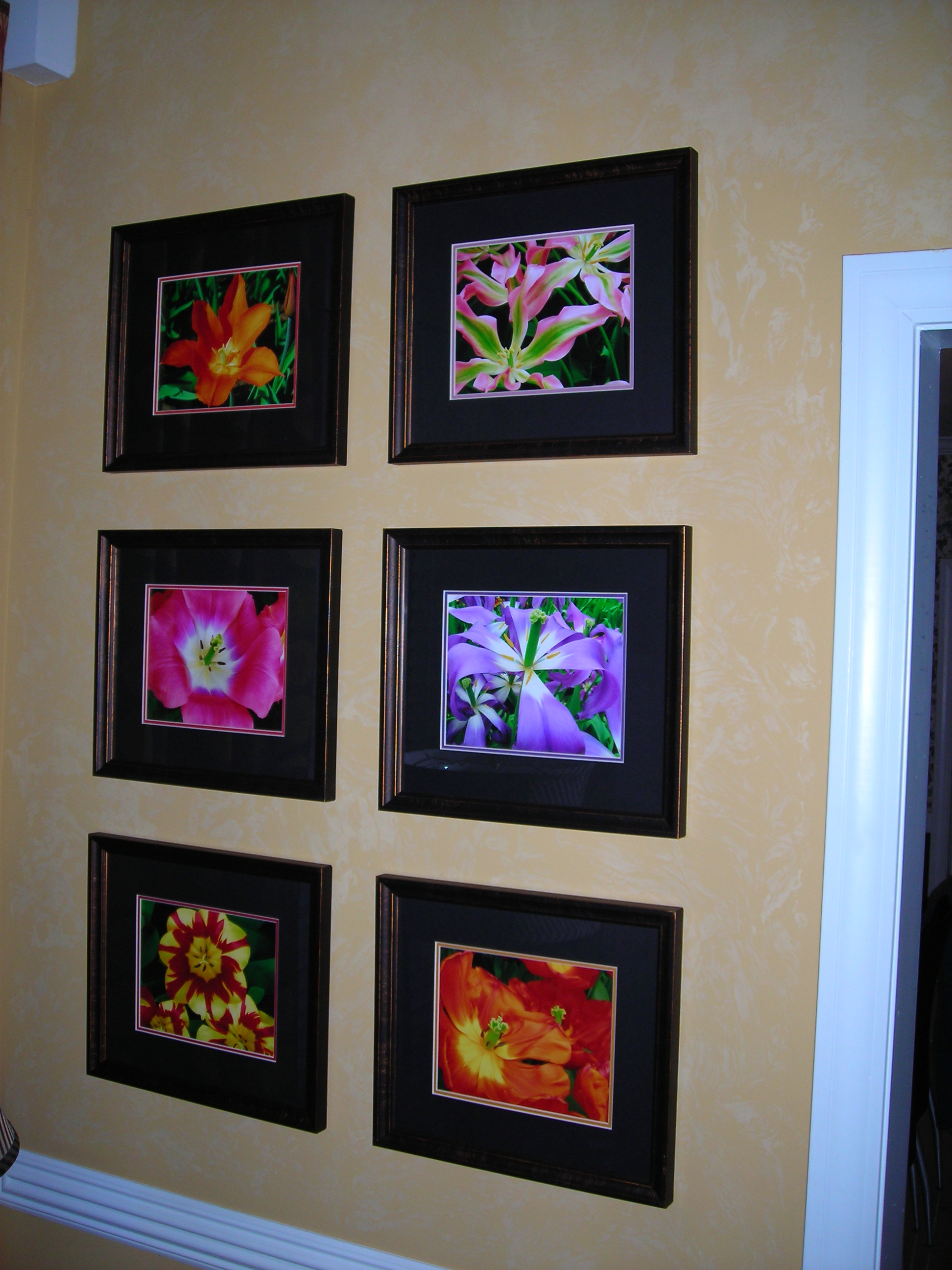 At this point, my wife and I had had a very successful trip to photograph the flowers at Keukenhof gardens, an enormous park an easy train/bus ride from Amsterdam. The tulips had really been at their peak that year on our visit so we had a huge selection. I had previously used photos from Keukenhof in calendars that I had made. I decided it was time to show off some of our pictures to others beyond just calendar recipients. So we had six professionally framed and grouped them together on the wall in our home.