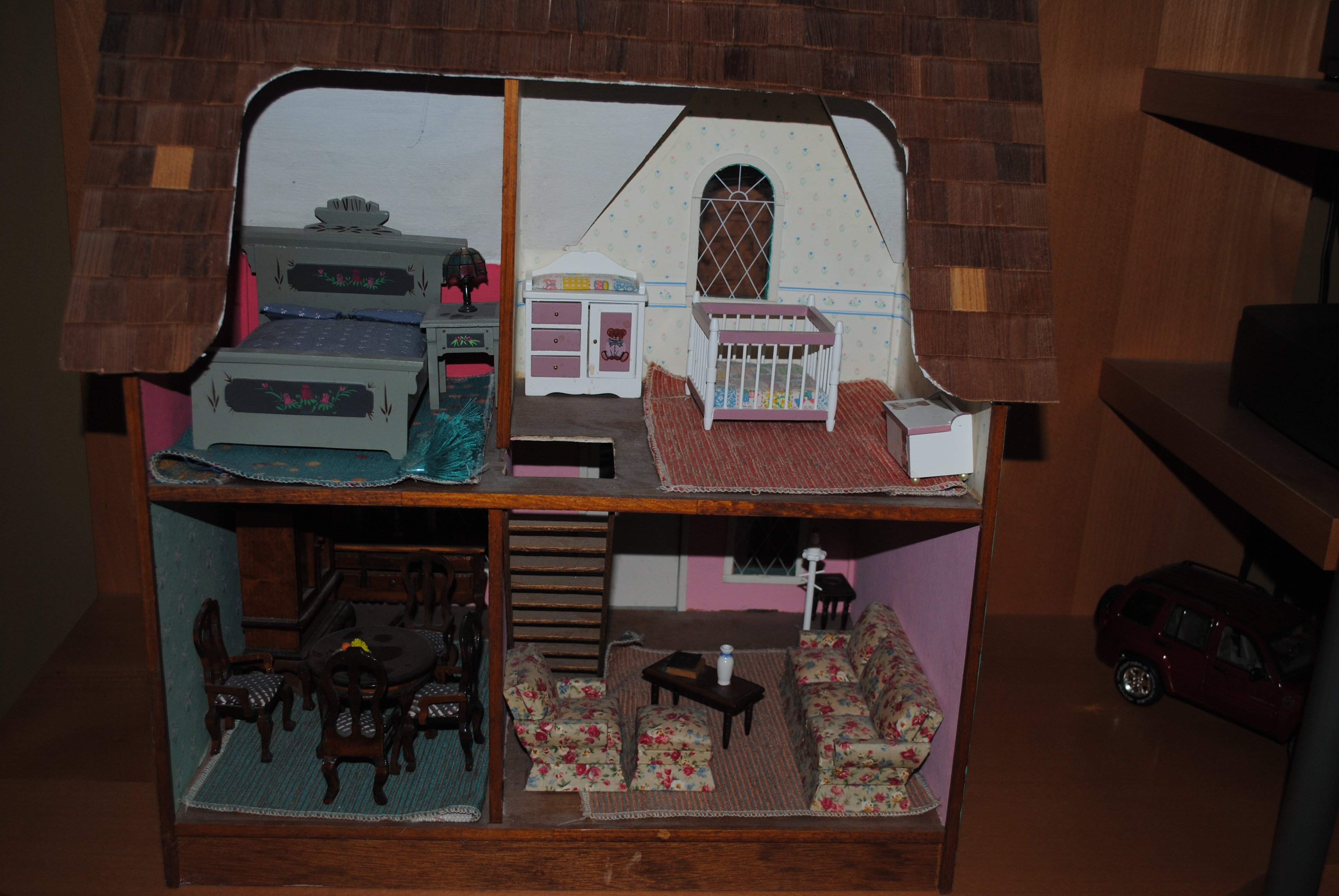 After a few more years of hibernation, my modeling days came back thanks to our daughter.  Recognizing her love for dolls, we decided to give her a wooden dollhouse kit for Christmas that she and I were going to build, paint and decorate together.  She picked the paint, wallpaper, and floor covering and we worked together to assemble it.  I probably did more of the cutting and gluing since she was too young but it was still a project we could share together.