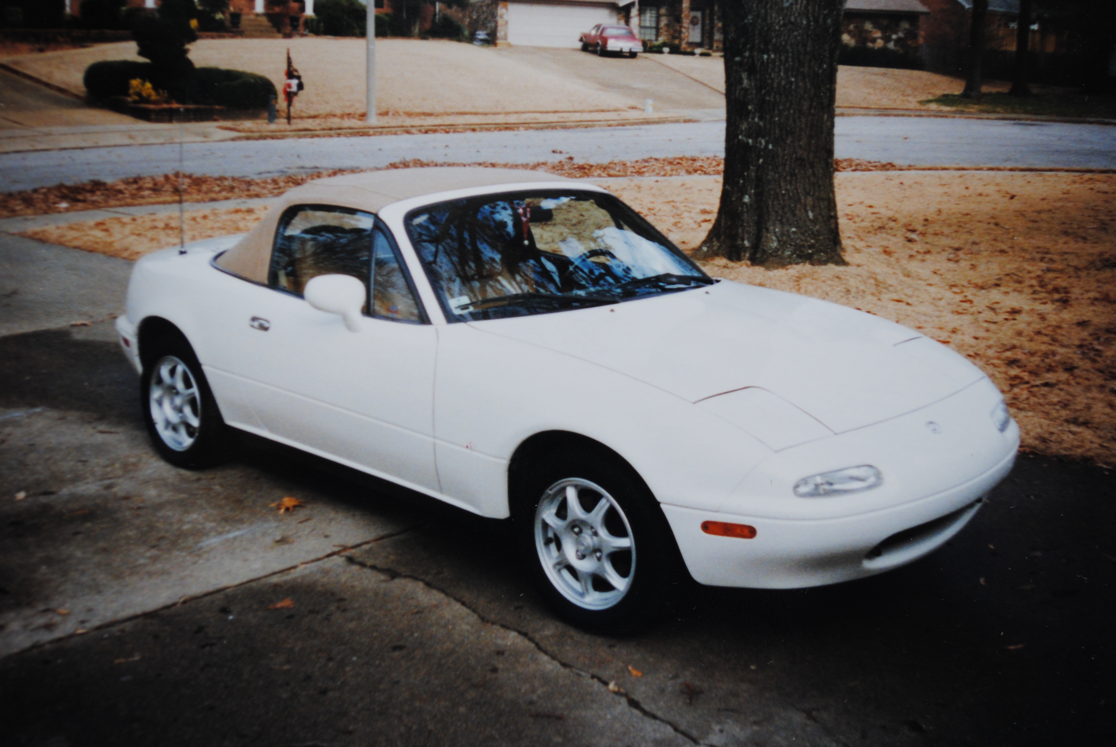 This fun continued for five years until 2002 when my oldest son needed to replace his Jeep, which had broken down and needed a new engine.  Since he was in his junior year in college with only future job prospects for paying a car note, I decided to “loan” him the Marshmallow and buy a new Miata for myself.  I say “loan” because I had no intention of giving it up.