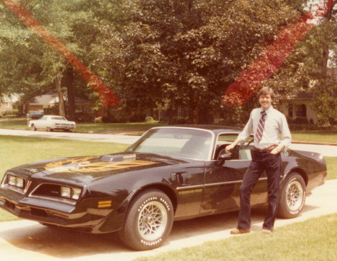 With a steady stream of income assured throughout graduate school, I was able to trade in my little blue Gremlin for a black 1978 Pontiac Trans Am with T/A 6.6 liter engine and four speed Hurst shifter (think “Smoky and the Bandit”).  It wasn’t a convertible—US car makers had discontinued them thinking the government would soon outlaw them due to the potential for fatal rollover crashes—but it was a sports car indeed.  Unfortunately it should have been painted yellow as it broke down the day I drove it home from the dealership—twice.  In spite of having to push it into the driveway after the second time it died, I still smiled ear to ear as this photo was taken.