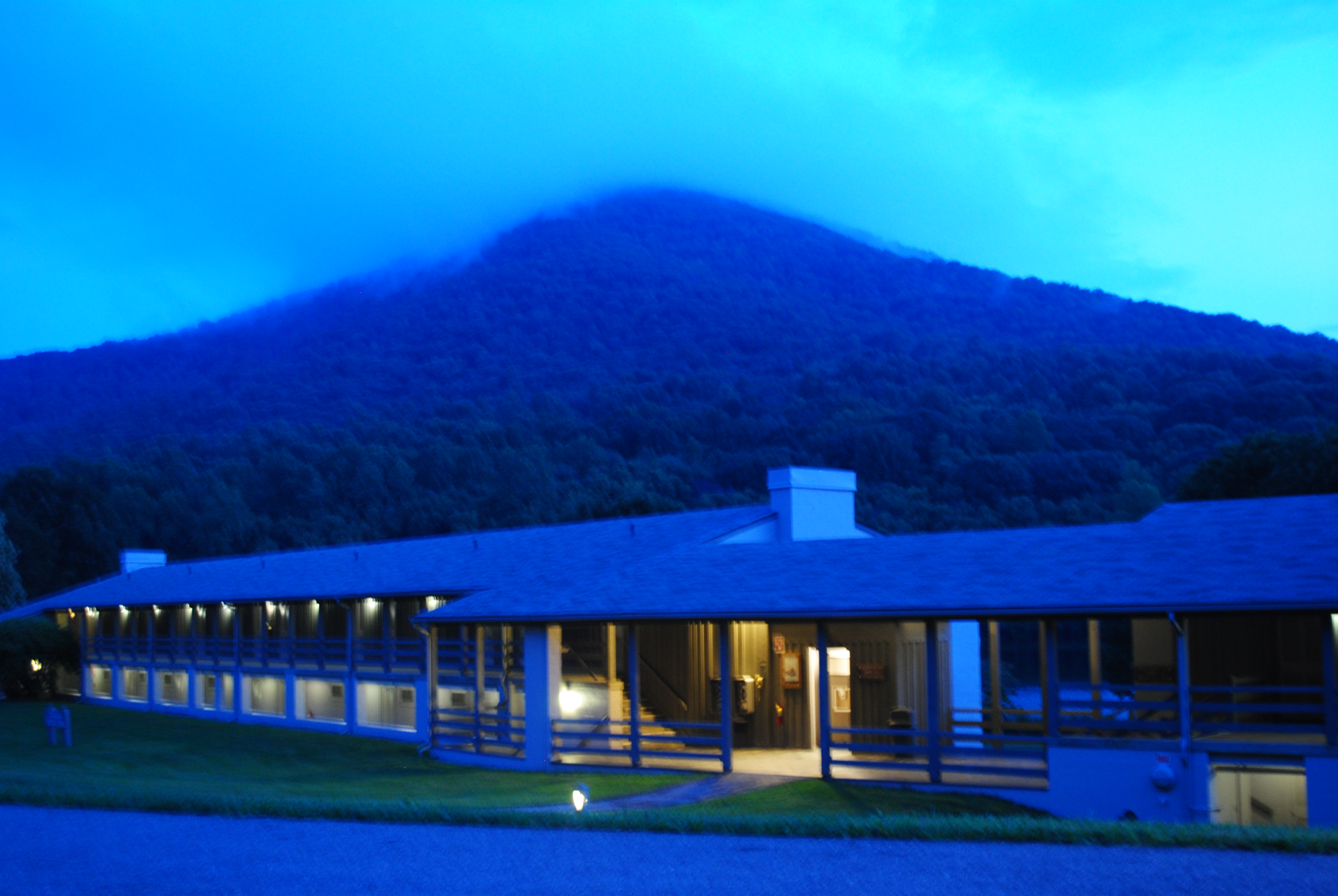 Coming back from a hearty, southern-style dinner of fresh vegetables, I found the lodge lit up nicely with the mountains as a backdrop.