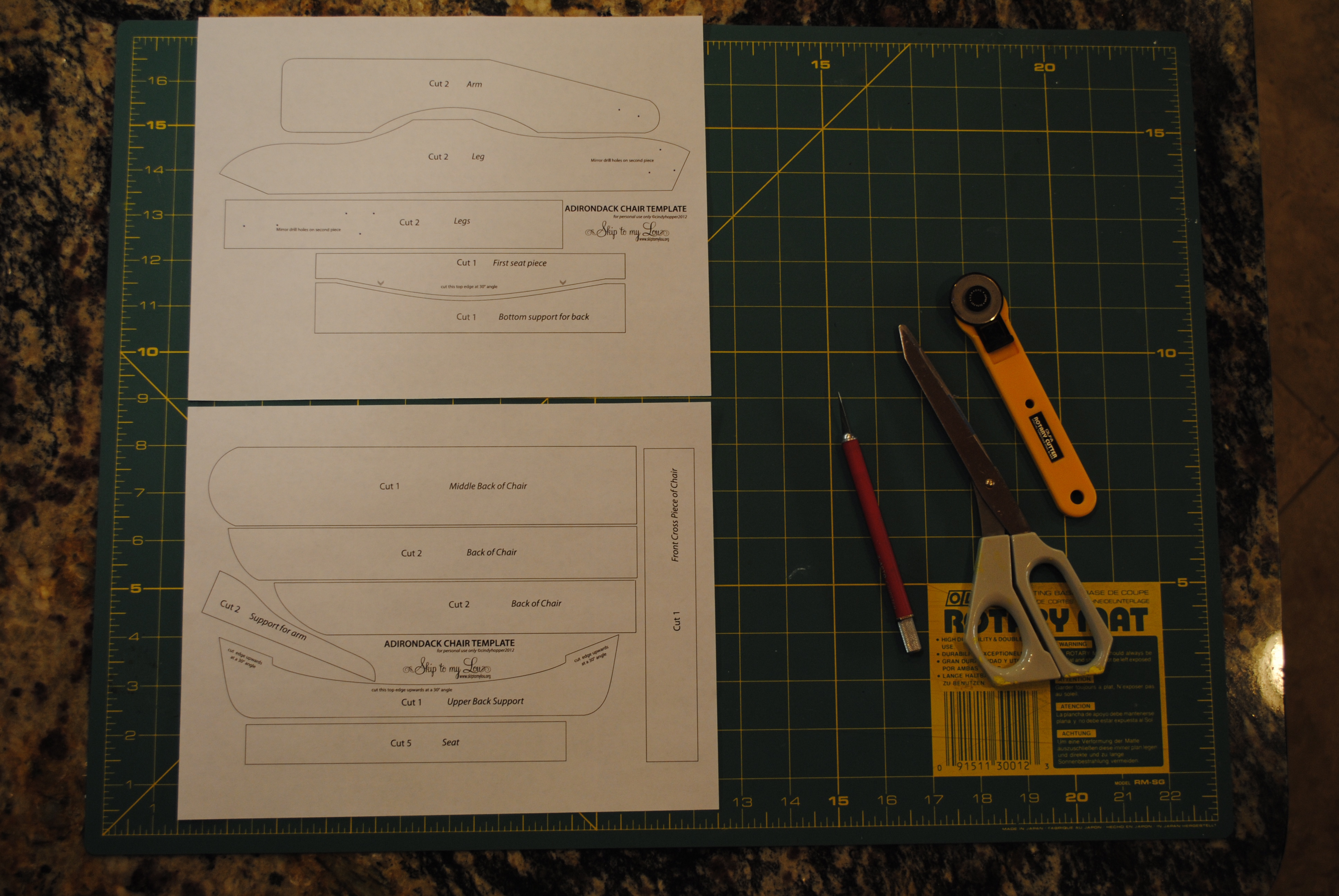 I had never tried to build an Adirondack chair before but I figured I could find directions on the Internet. While multi-tasking in one of my teleconferences at work, I searched the internet and found a wonderful website that had the detailed plans for a full size chair: Skip to my lou.