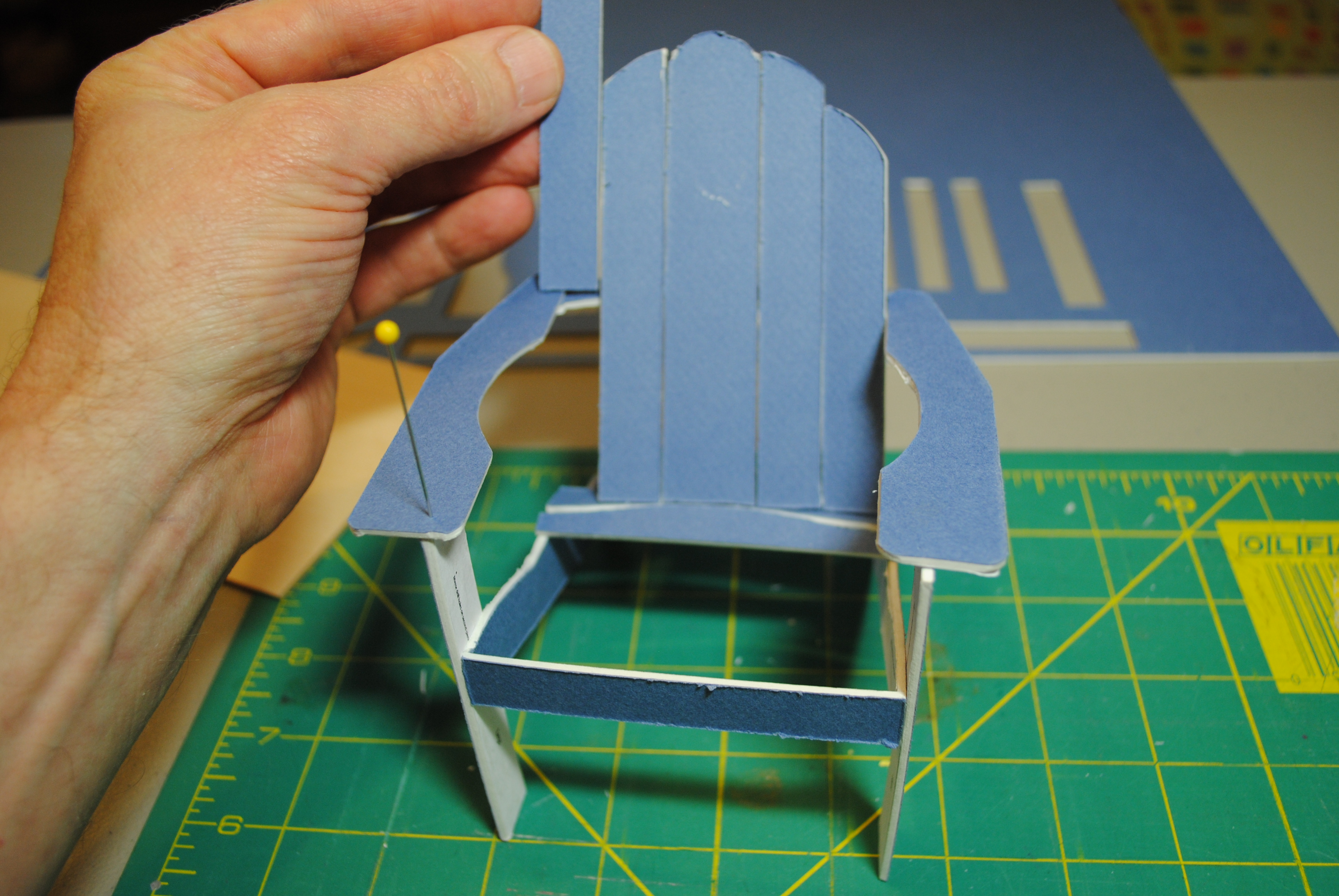 Since I am an extremely organized guy—think a place for everything and everything in its place—I thought what a perfect spot for my phone to relax in while I was at work. That decided, I next just needed to figure out what kind of miniature chair to build. That part was actually fairly easy. I didn’t want to try to replicate the canvas beach chair I had seen; I wanted something unique. This is where my sister came in.