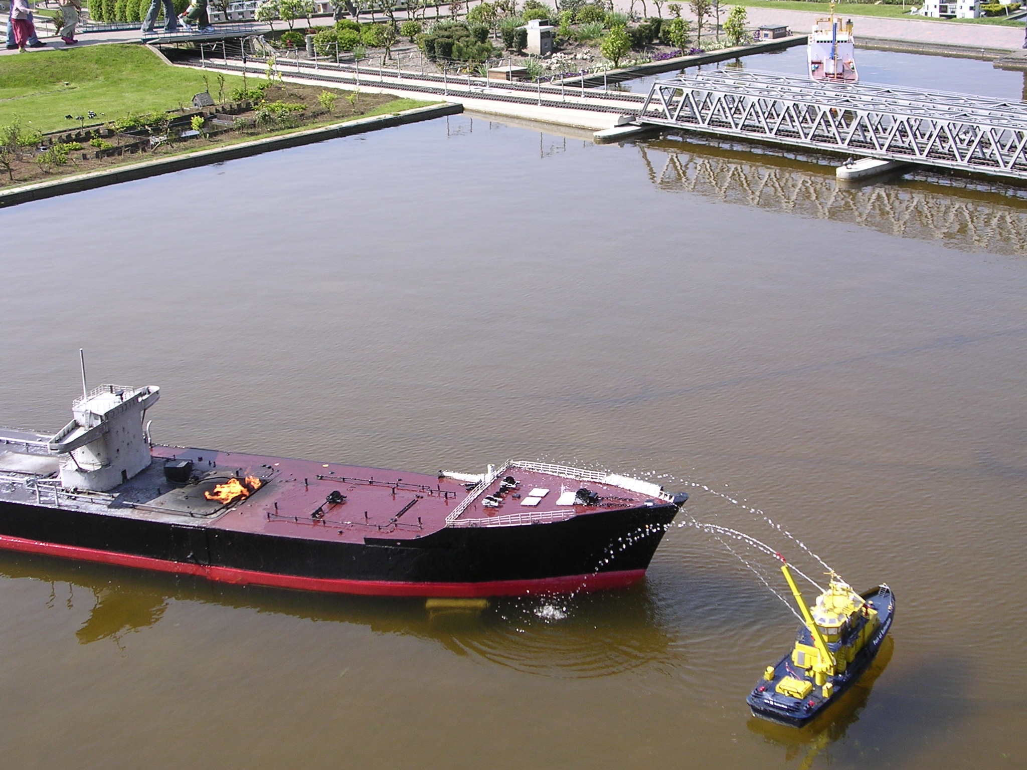 My first introduction to this miniature world was in 1994 as a part of a multi-stop tour of The Hague. As my wife and I exited the tour bus on that rainy overcast day, the driver told us we had one hour to explore the park before the bus would leave for its next stop. When we walked through the entrance and stood on the promenade to the park, my eyes were amazed at what they saw. Everywhere I looked, I saw miniature models of buildings, bridges, windmills, trains, highways, and even a functioning Schipol airport with planes taxiing around the runway. Right at my feet, was a large pool with an oil tanker floating in it. All of a sudden, flames started coming out of the tanker, sirens began going off and a fireboat rapidly motored up next to the tanker and began spraying water to extinguish the fire. So began my first magical discovery of Madurodam. I could immediately tell one hour was never going to be enough for me and that future trips would be necessary.