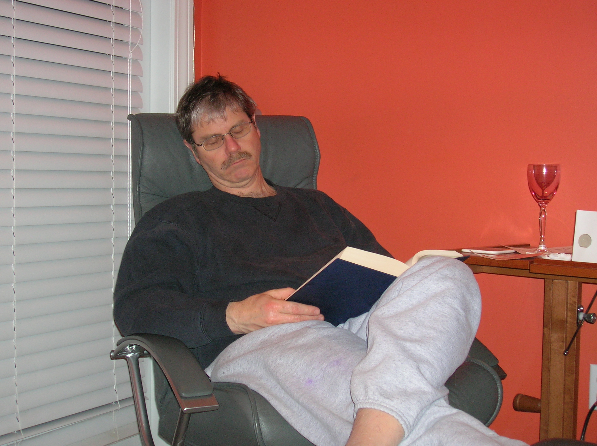 Last August, we bought a condo in midtown and have been renovating and redecorating it for almost a year.  I currently don’t have a chair there as we are just now adding furnishings.  And as past experience has taught me, if I lay on the bed to try to read at night, it isn’t long before sleep has overtaken me.