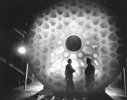 Beyond just selecting the appropriate material from which to produce the disk, pouring the massive disk proved to be nearly impossible. General Electric was the first company contracted to produce the mirror blank but after several attempts at using quartz glass, failed to produce an acceptable casting. Switching to the Corning Corporation, ultimately it was George McCauley who led the team to successfully produce the disk using Pyrex glass. But this was only after the disk had annealed in an oven for a year slowly cooling the mirror to prevent it from distorting or cracking.