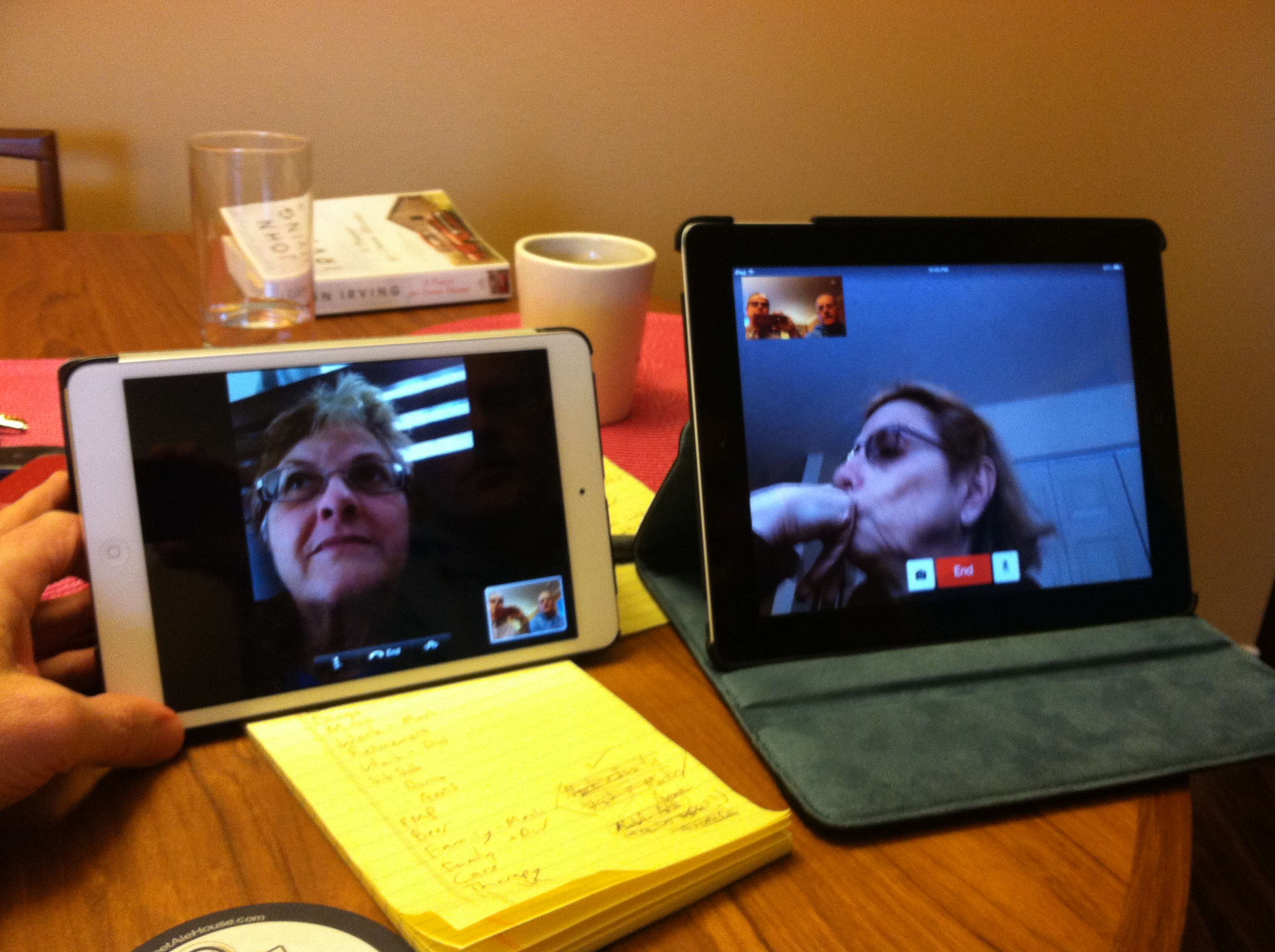 As we talked our sisters began texting us pictures of the accumulating snow outside their windows.  We soon realized our two sisters wouldn’t be able to drive over later that afternoon as originally planned.  So I suggested we Facetime them so we could at least digitally connect.  Since they were snow bound at their own homes, I Facetimed one sister while my brother Facetimed our other sister.