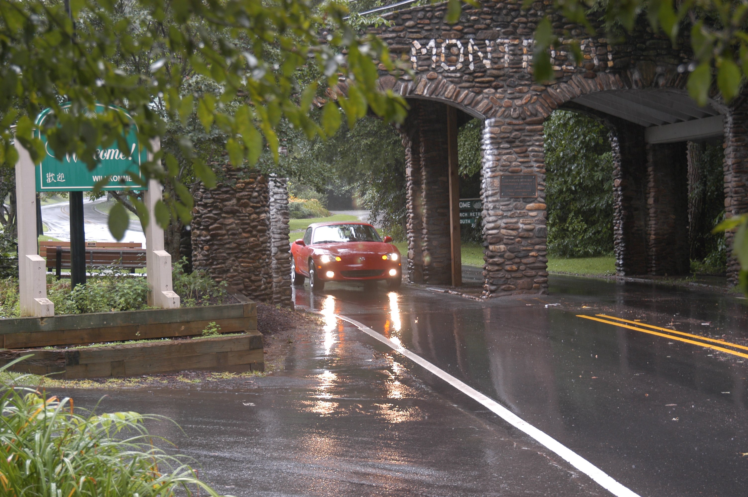 And upon leaving, my sister even agreed to stand in the rain and get my shot driving through the well-known Montreat gate.