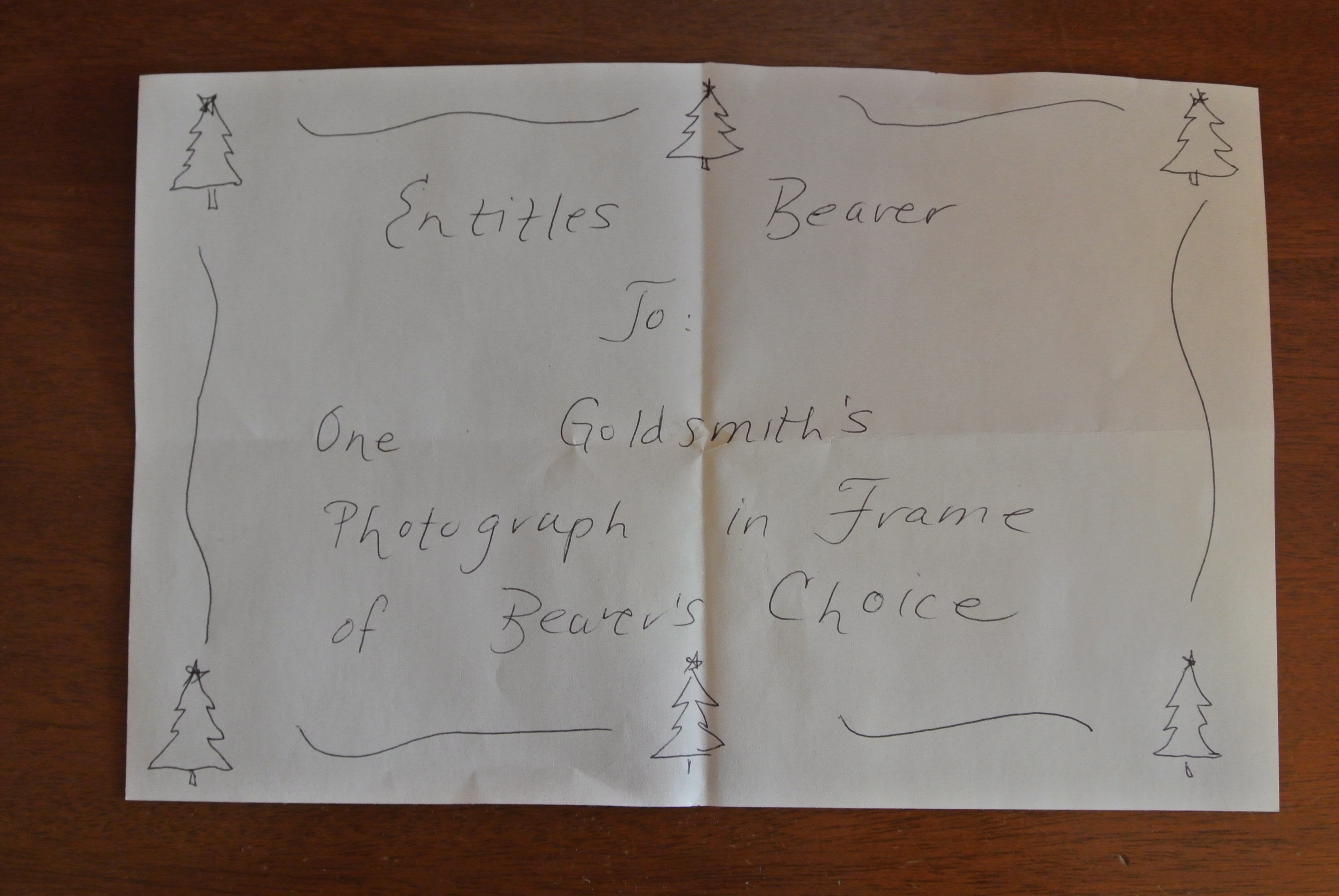 Having made this desire known to my wife, she kindly gave me a hand-made certificate for one of my own choosing for Christmas last year.