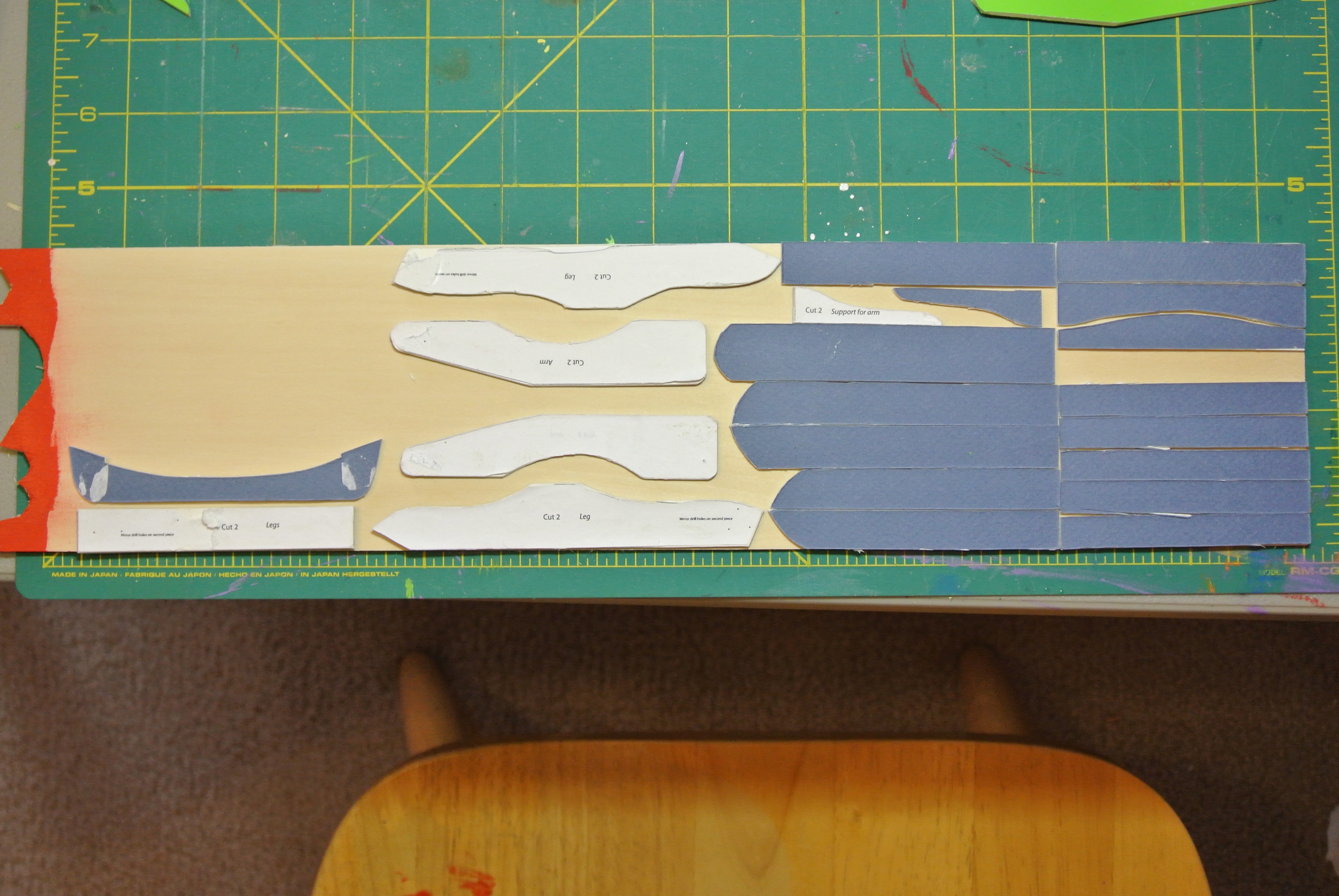30 min. – Gluing the pieces together to assemble the chair (not counting drying time between gluing each piece)