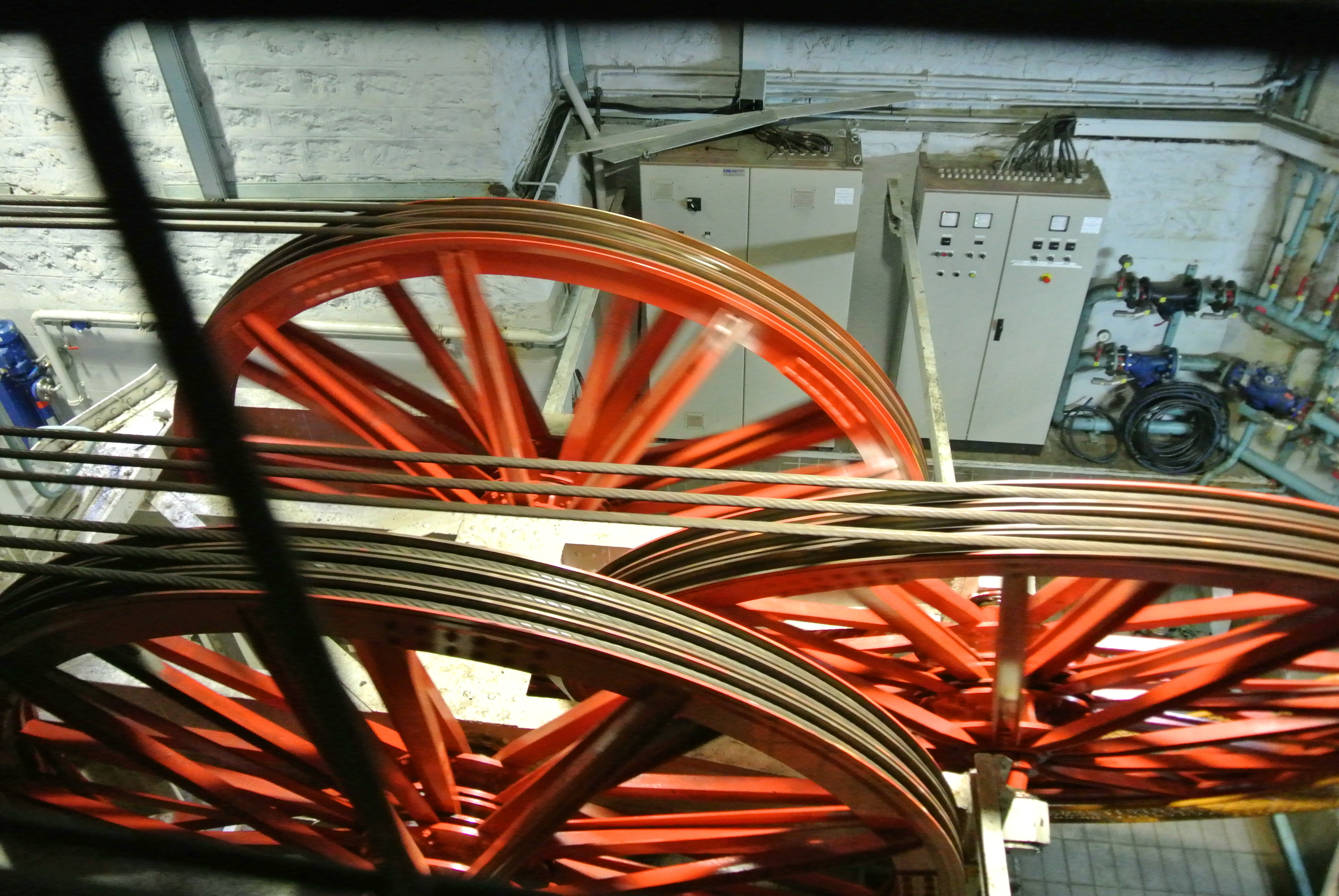 Our tour also included seeing the complex of mechanical equipment that raises and lowers the elevators, both the current mechanism that was installed in 1965 as well as those it replaced that was installed in 1899.