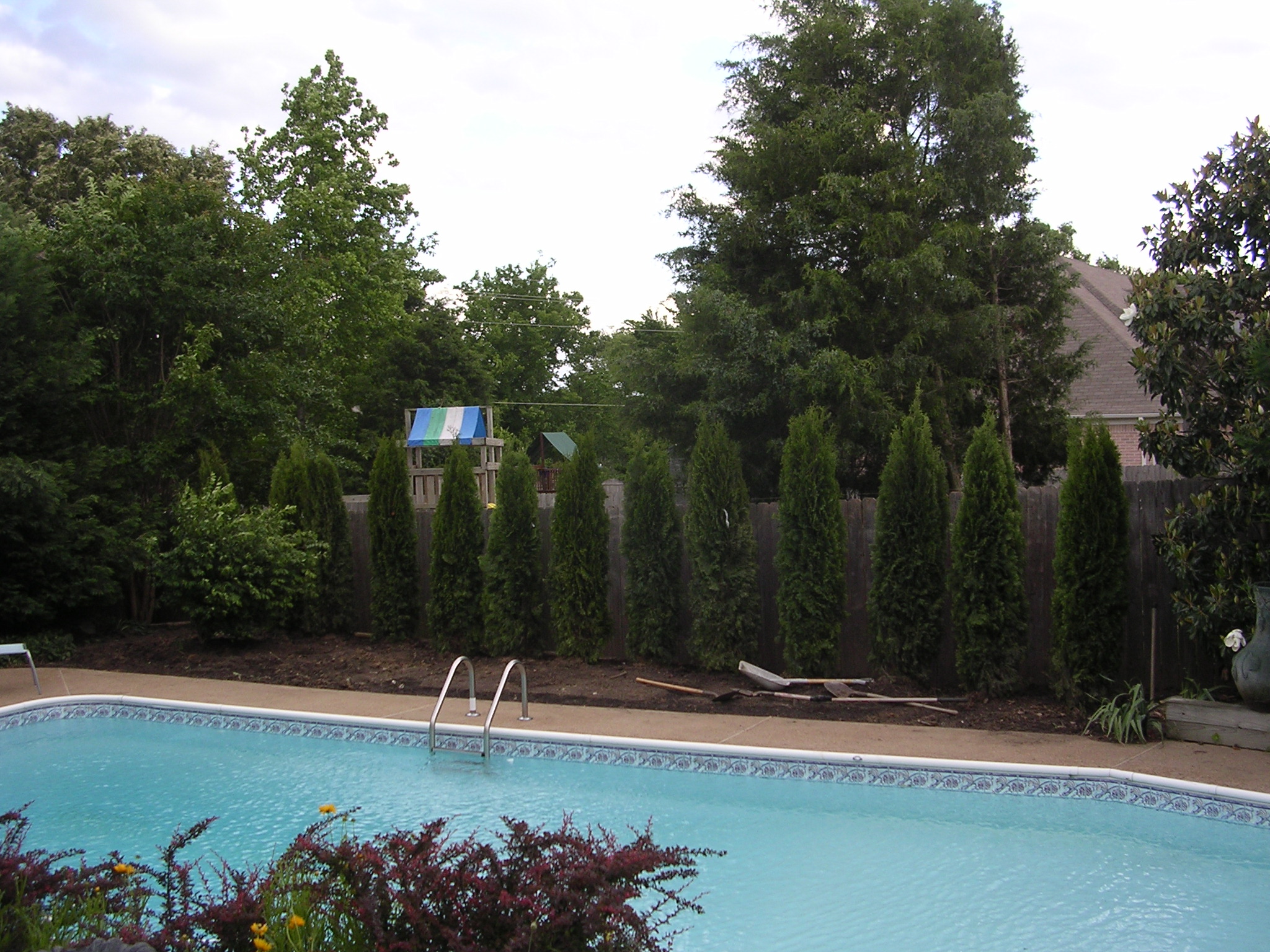 And the wayward Leyland cypress trees began to look as if they were going to jump into the pool.