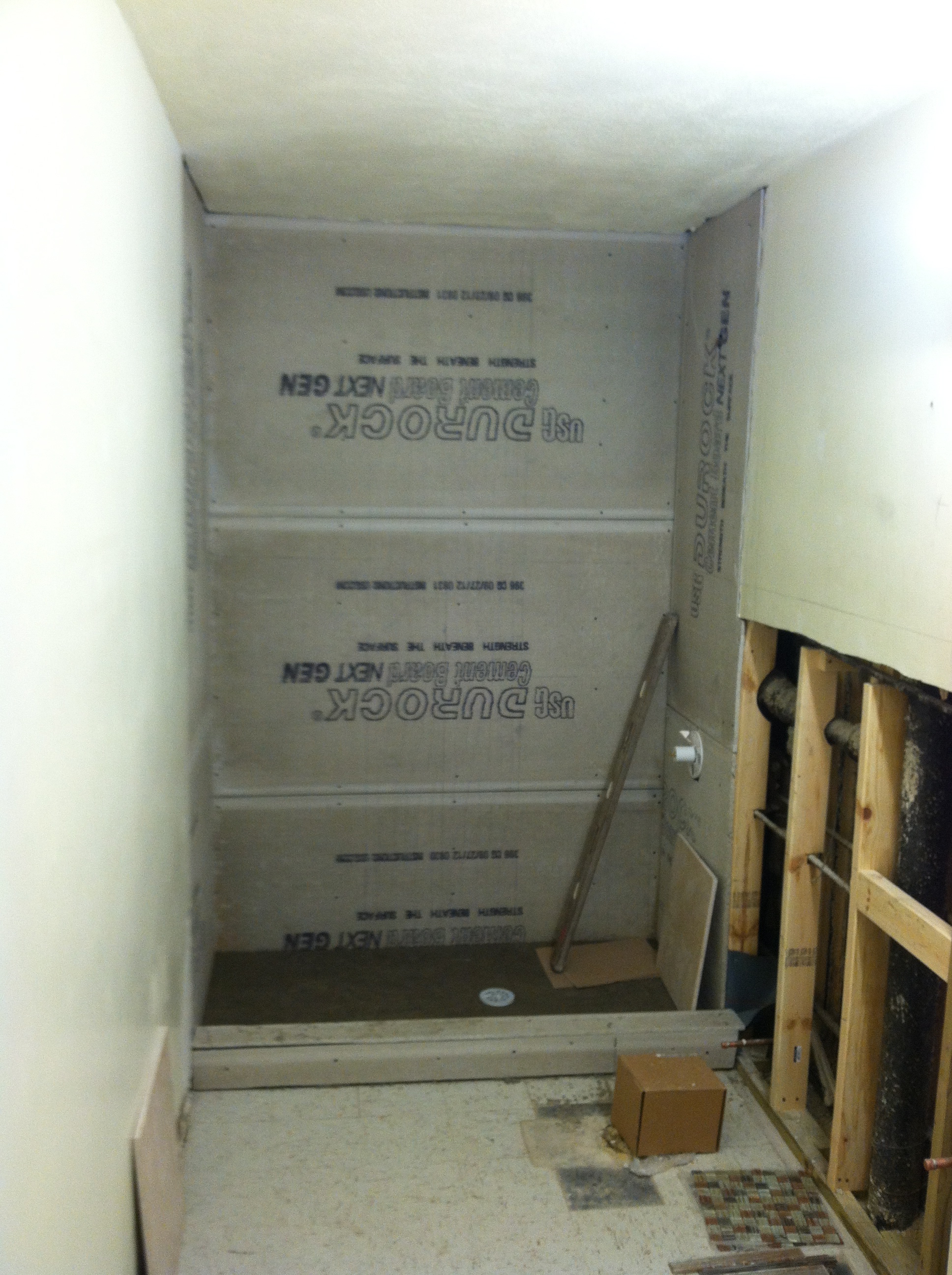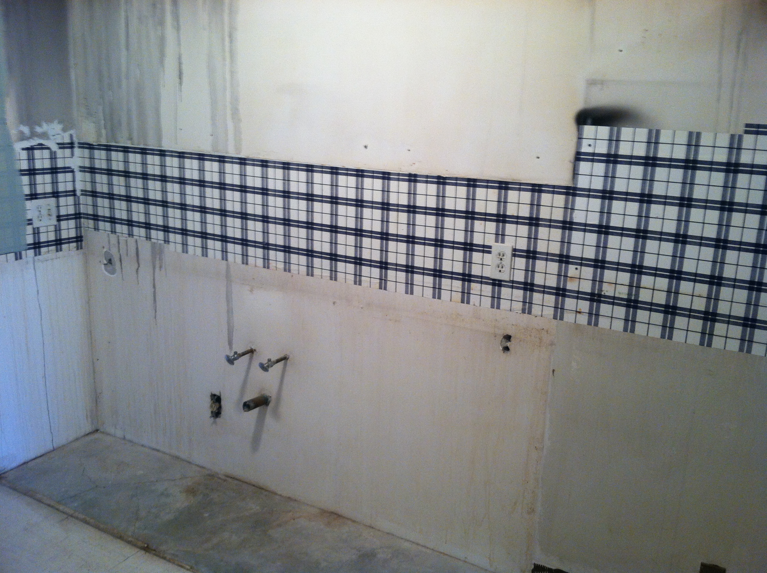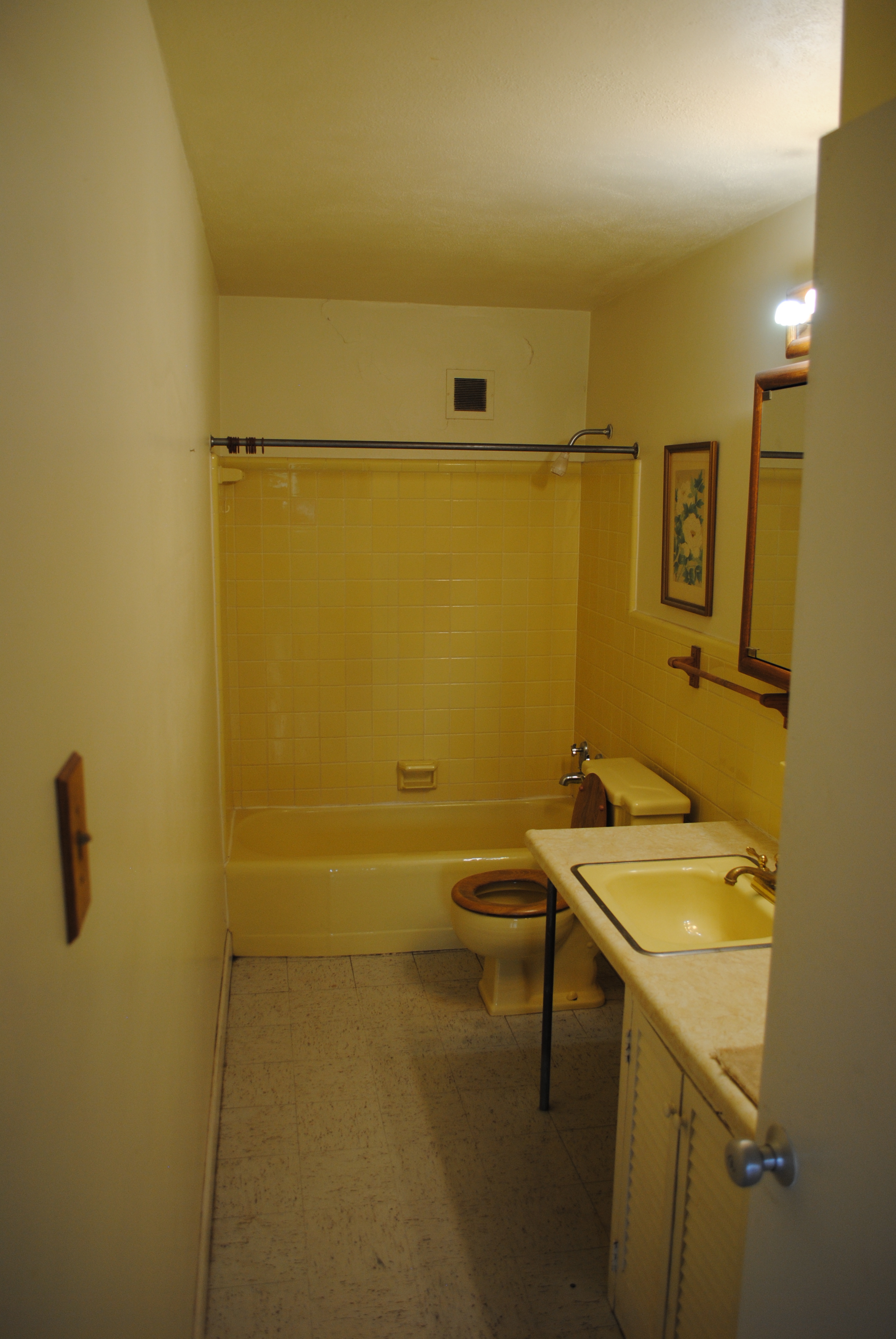 We started in the bathroom, which we knew neither of us would want to use as it was since it wearily showed its age in this 50 year-old building. After gutting it…