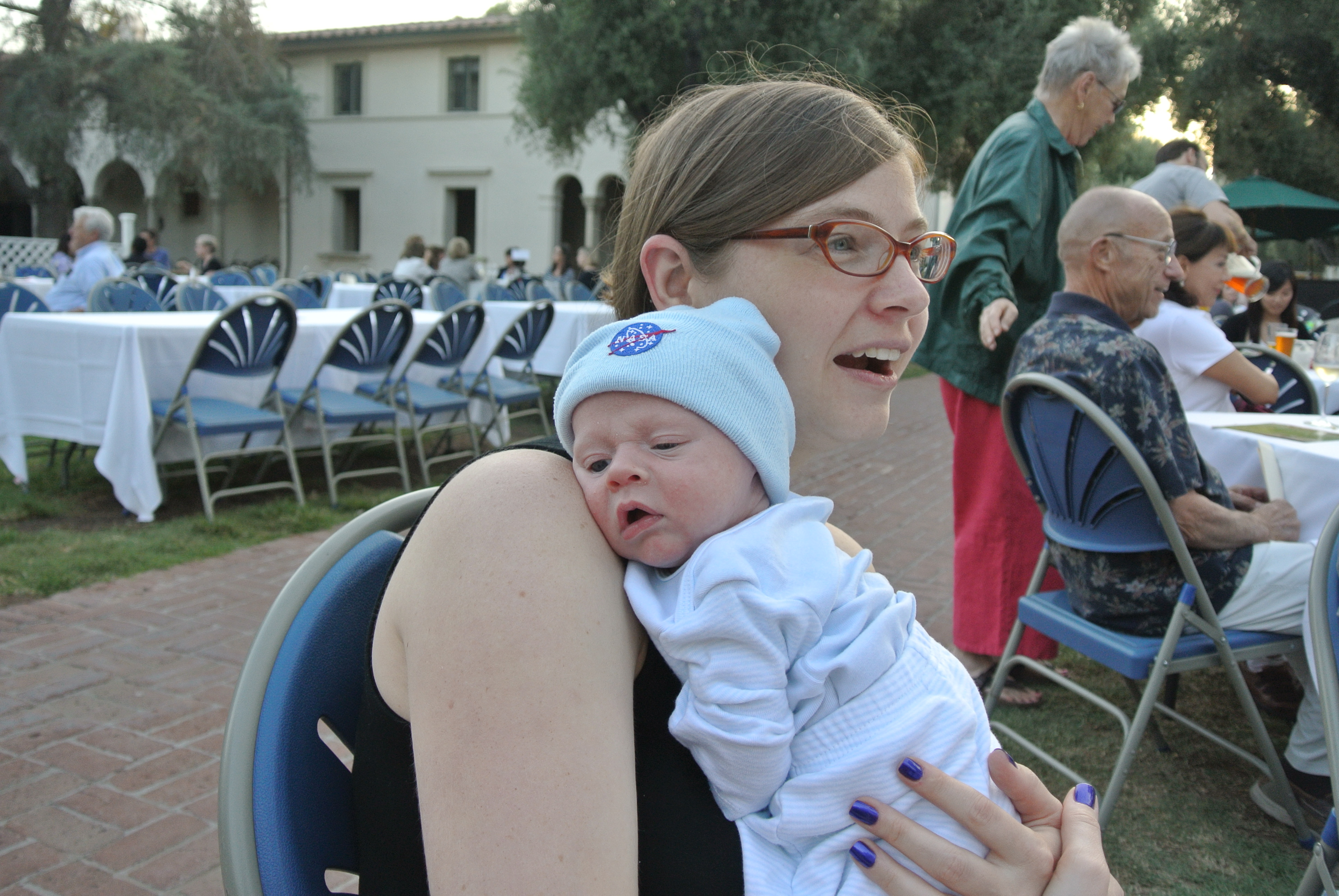 We took him for his first dinner out at an outdoor restaurant on campus.