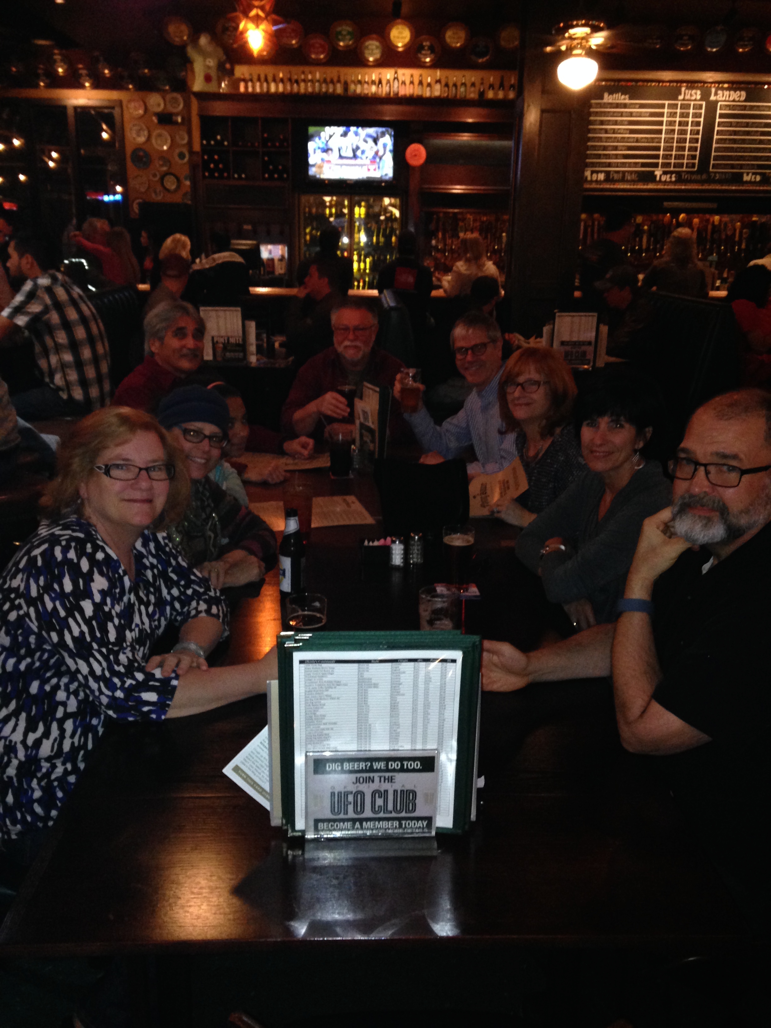 This weekend, I reached a beer-drinking milestone. The Flying Saucer has a UFO club that you can join and once you drink 200 different beers, you receive a plate (saucer) with your name, date of 2ooth beer, and a saying of your own choosing that is attached to the ceiling for all to see. And when you reach 200, they throw you a party to celebrate! So my wife and I each received our plates at a joint party.