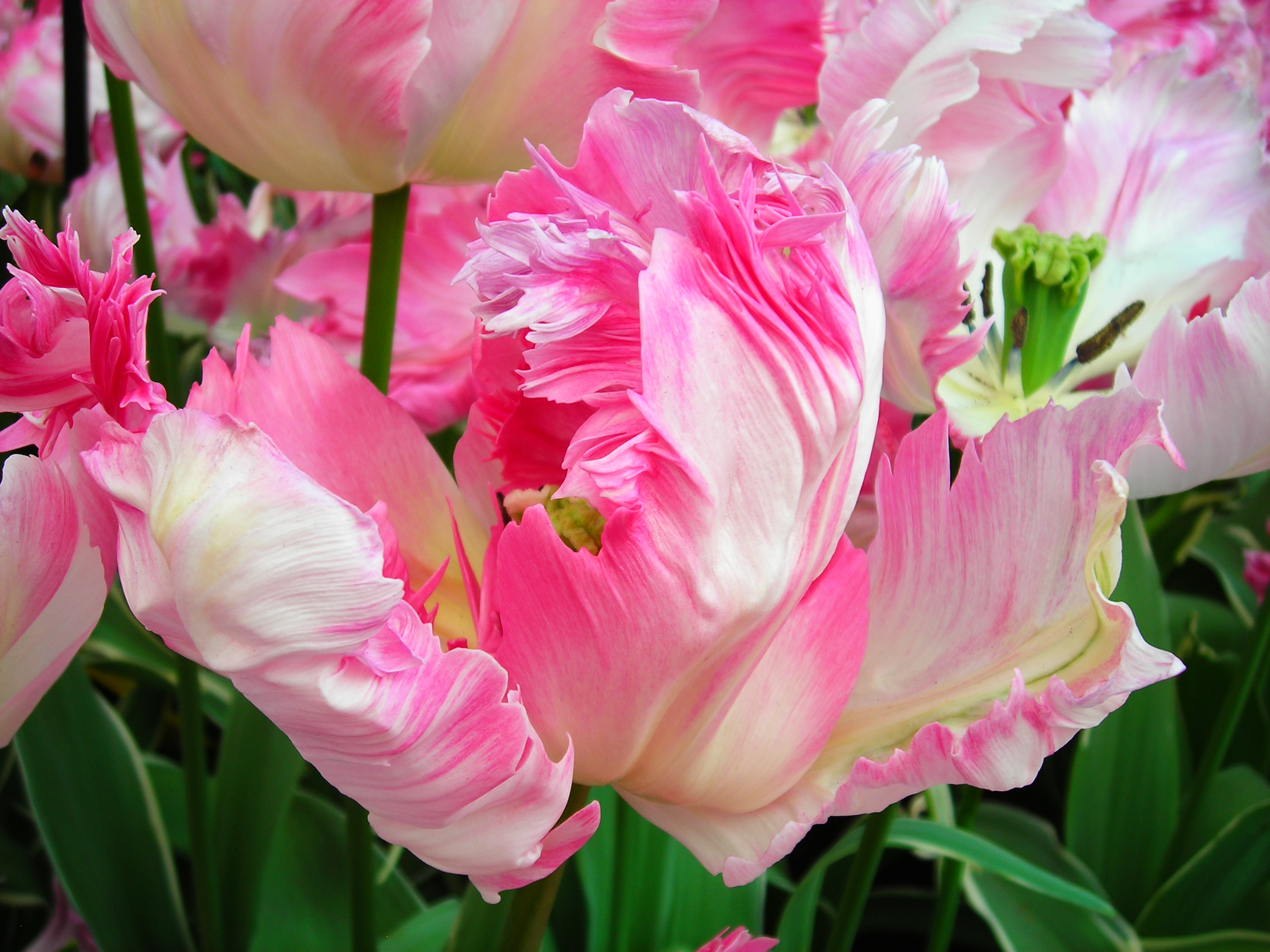Inside the large pavilion, were planted large beds of a number of different tulips. Even a fixed-focus point and shoot camera could capture more than 20 different varieties in a single shot.