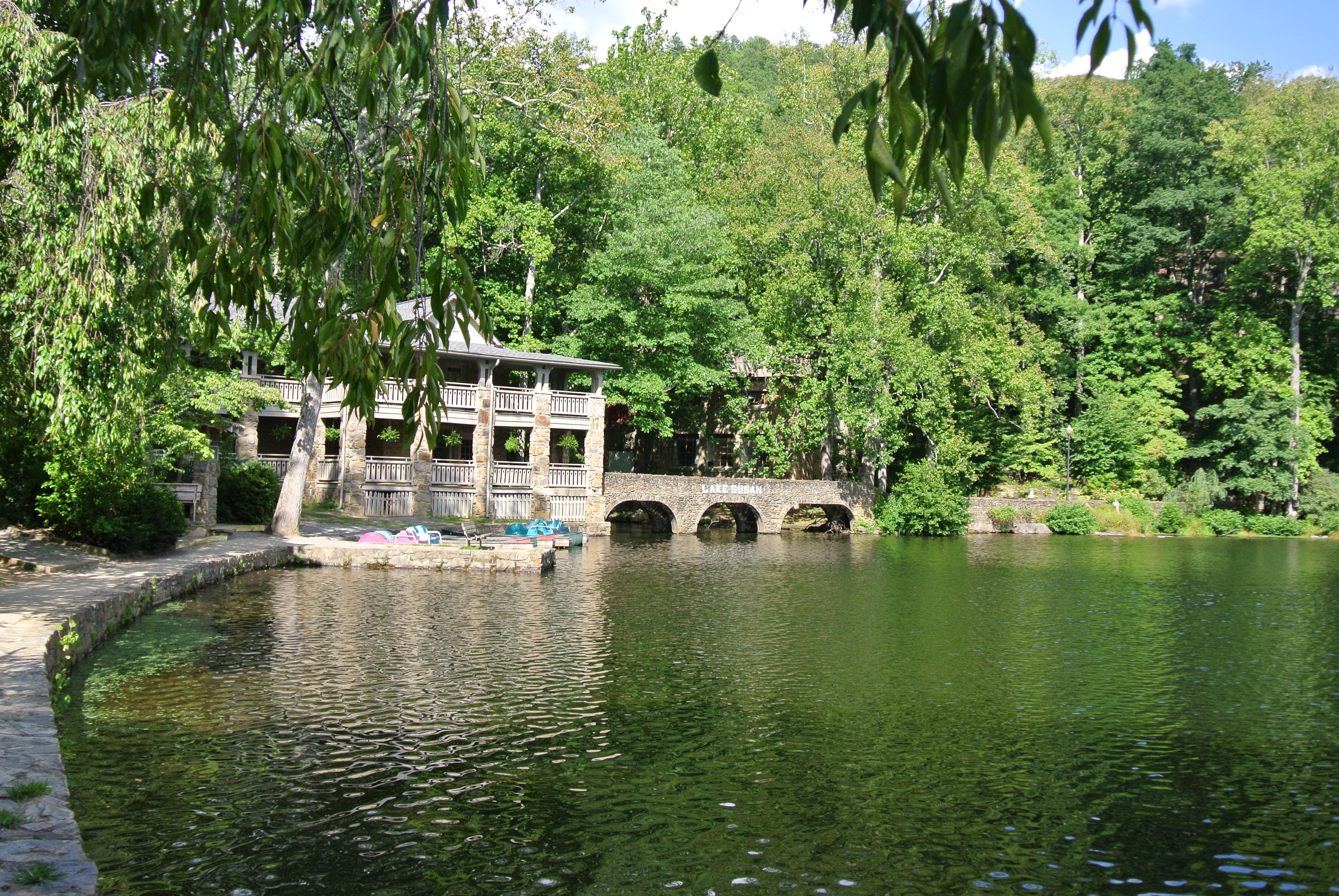 After driving up the narrow road running along the burbling mountain stream, our first stop was the porch at Assembly Inn overlooking the frigid Lake Susan where we swam as kids. In later years after the lake was closed to swimming, my brother would fish there for rainbow trout.