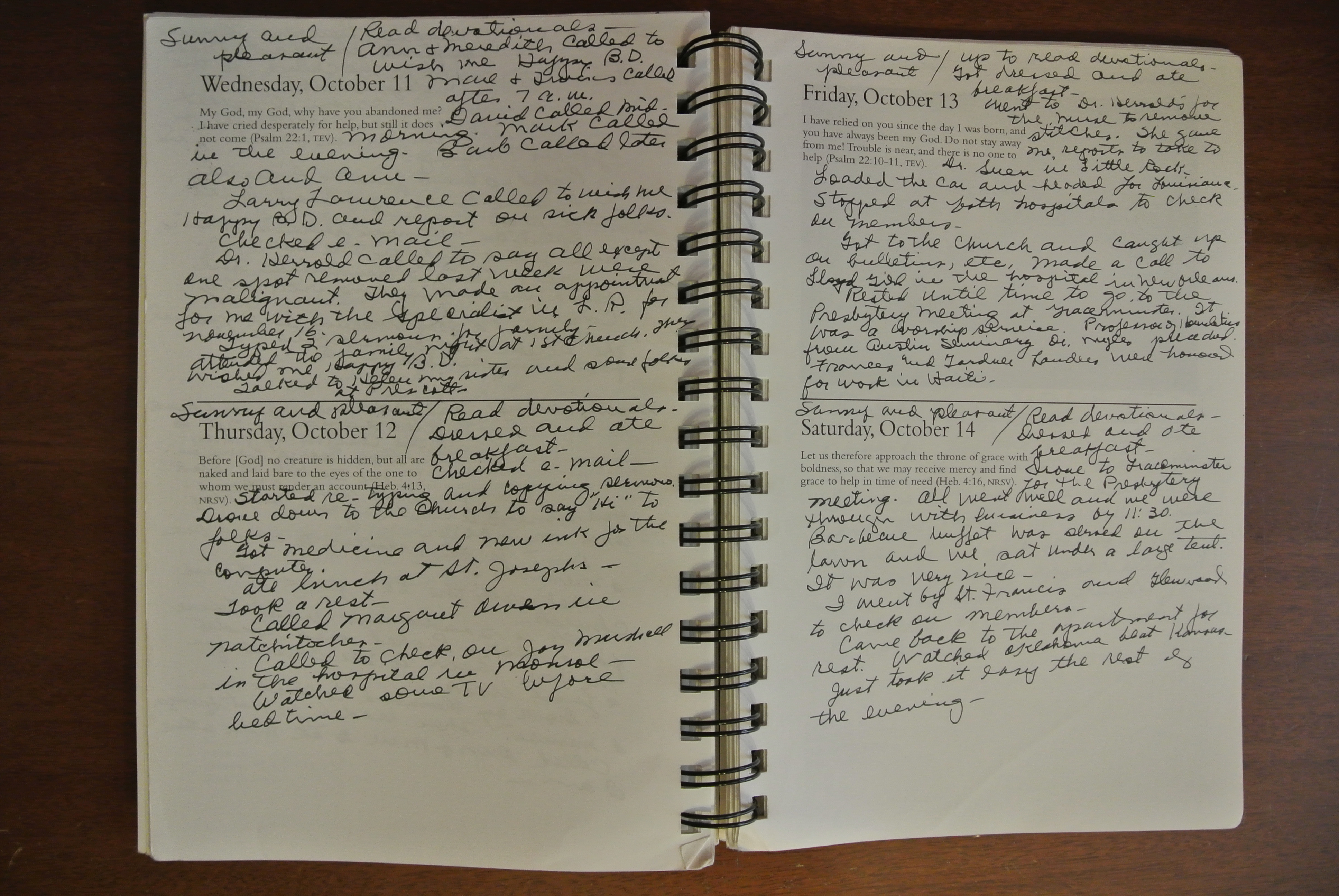 But tears came even harder when I suddenly realized reading Dad’s entry for the one-year anniversary of Mom’s death that the page in his 2002 journal would be blank on the day he died. While it breaks my heart to think of that page and all the rest of the pages for that journal remaining blank, it is comforting to know that I have captured the events of that day, not in his journal but in my own way, in a Glimpse of My Dad blog post.