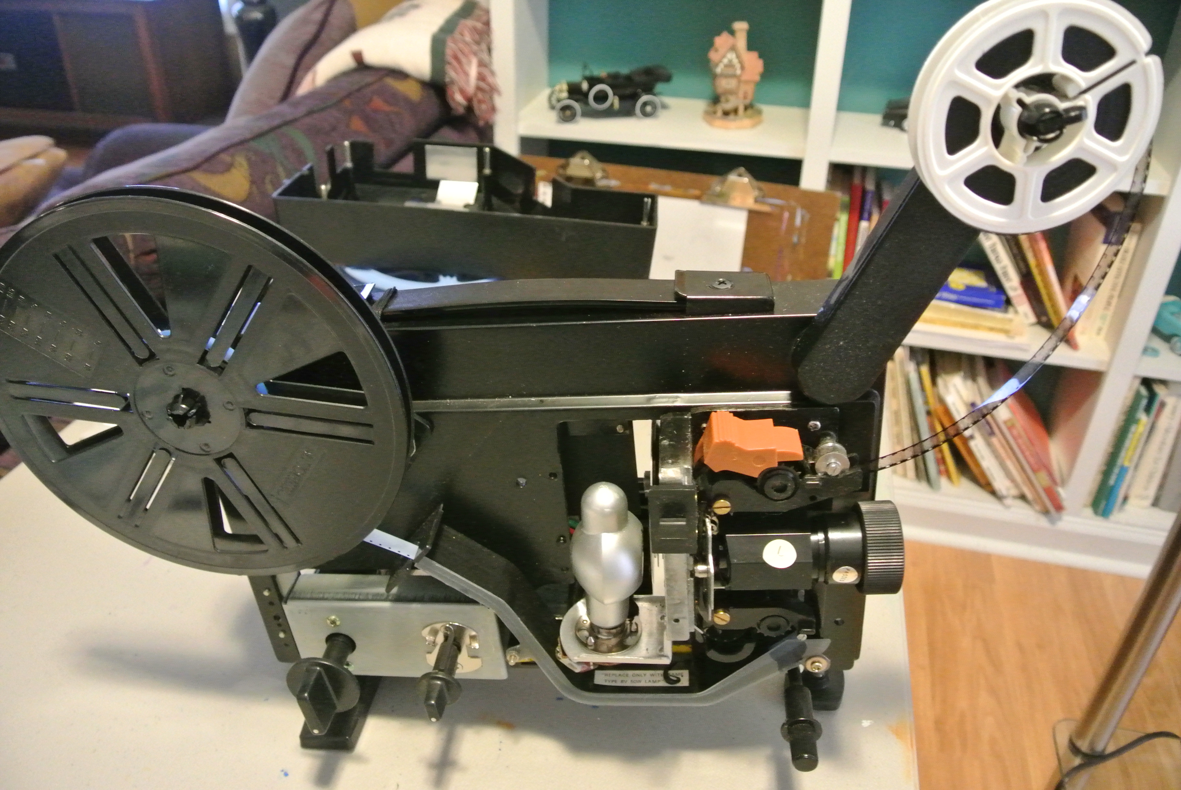 I realize you have to be of a certain age to recognize one of these. Before the age of cam recorders, video cameras, digital video media, and even personal computers, there were home movie cameras. And once the film, typically a 50-foot roll (about 3 minutes of film) was sent off for developing and returned, you would watch the movie with one of these projectors on a white screen in the dark.