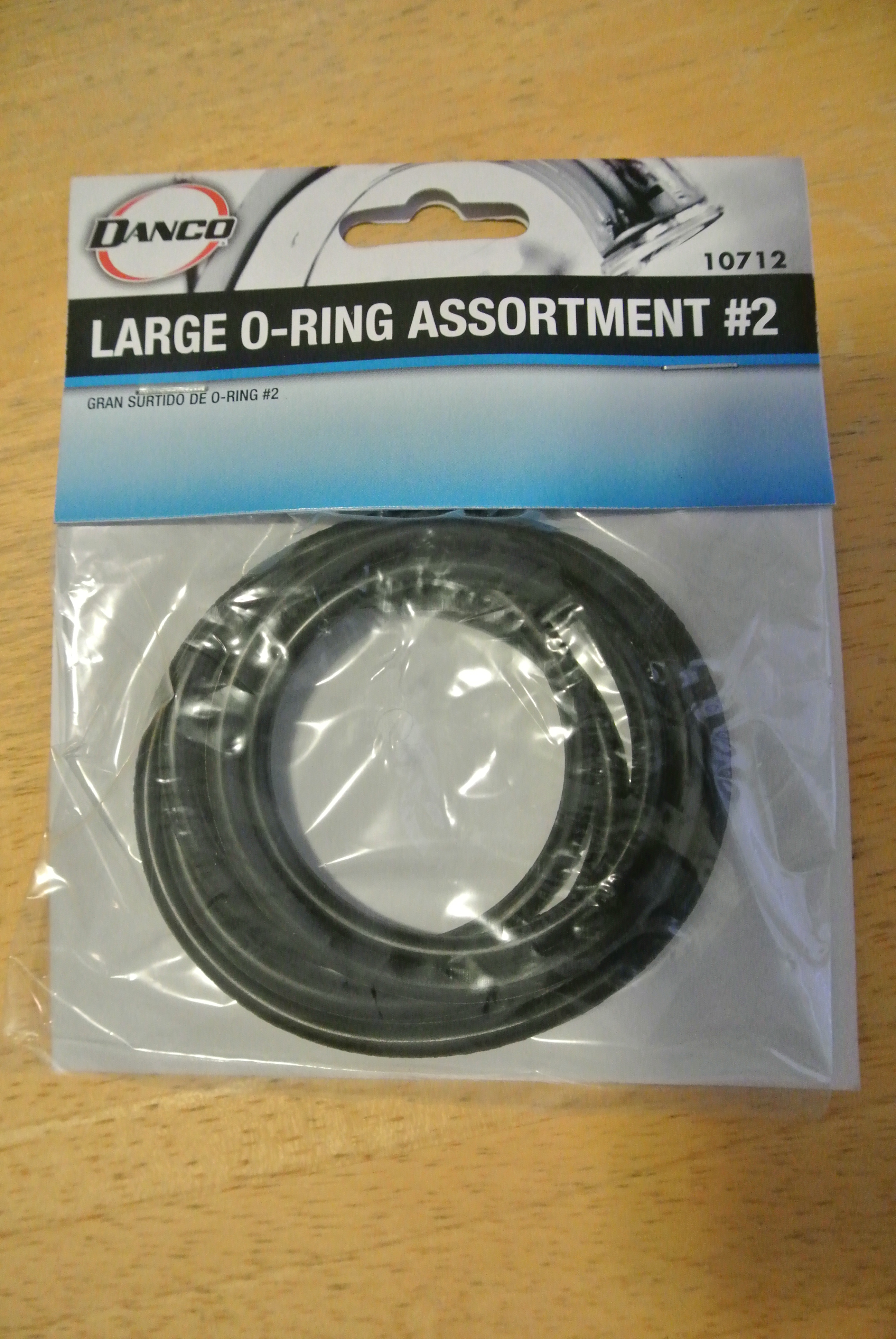 I pondered for a few days what my next step would be. I decided to look at my favorite toy store—Lowe’s—to see if they might have something that might work. I knew from the remaining pieces that it needed to be a round, continuous band with no metal connector. After unsuccessfully wandering all over the store, I came upon the idea of a plumbing O-ring. I scoured the plumbing section but only found parts that came with very small washers or O-rings. As I was about to give up, I found a rack with packages of large O-rings. There were three different size packs, each containing several O-ring sizes. I knew an O-ring wouldn’t stretch as much as a rubber belt so I went with the largest size O-rings.
