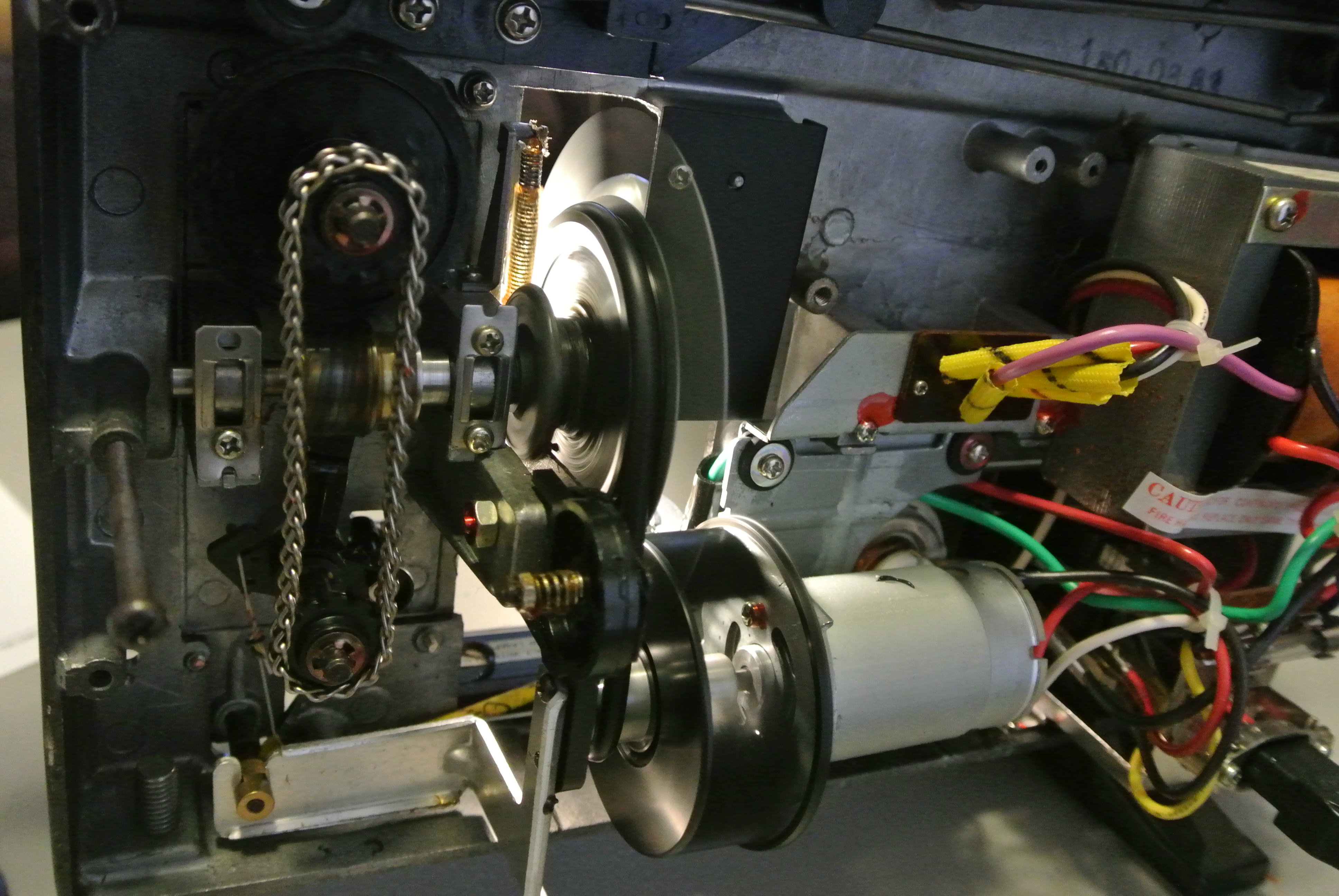 I finally got it around both pulleys and then turned on the projector. It seemed to work like a charm. Now all I had to do was wait for it to get dark to see the movies.