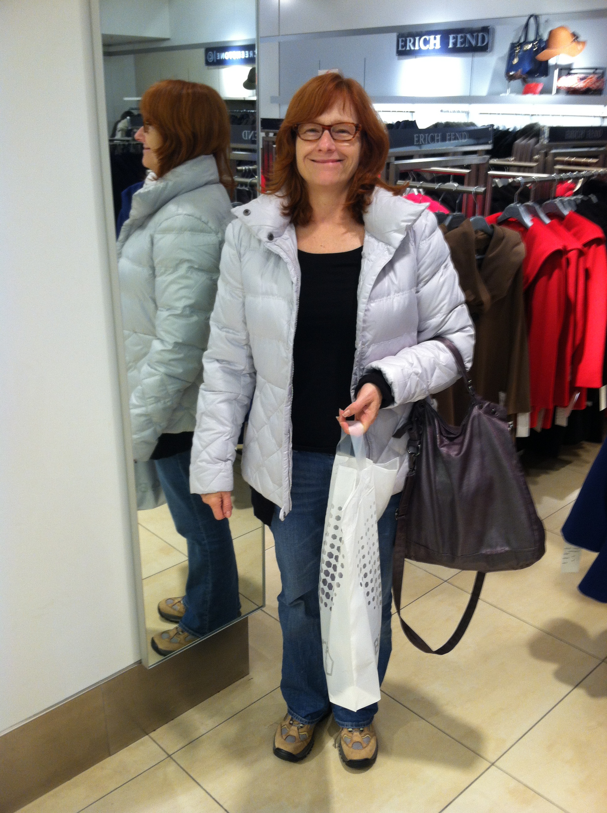 Over in the corner, I spied some others that came in sizes I was familiar with and among them I found a perfect fit. As I expected, it was very lightweight but warm. And it was just 140 euros, a little more than I had hoped to pay but much less than the 200 euros I was unwilling to spend.