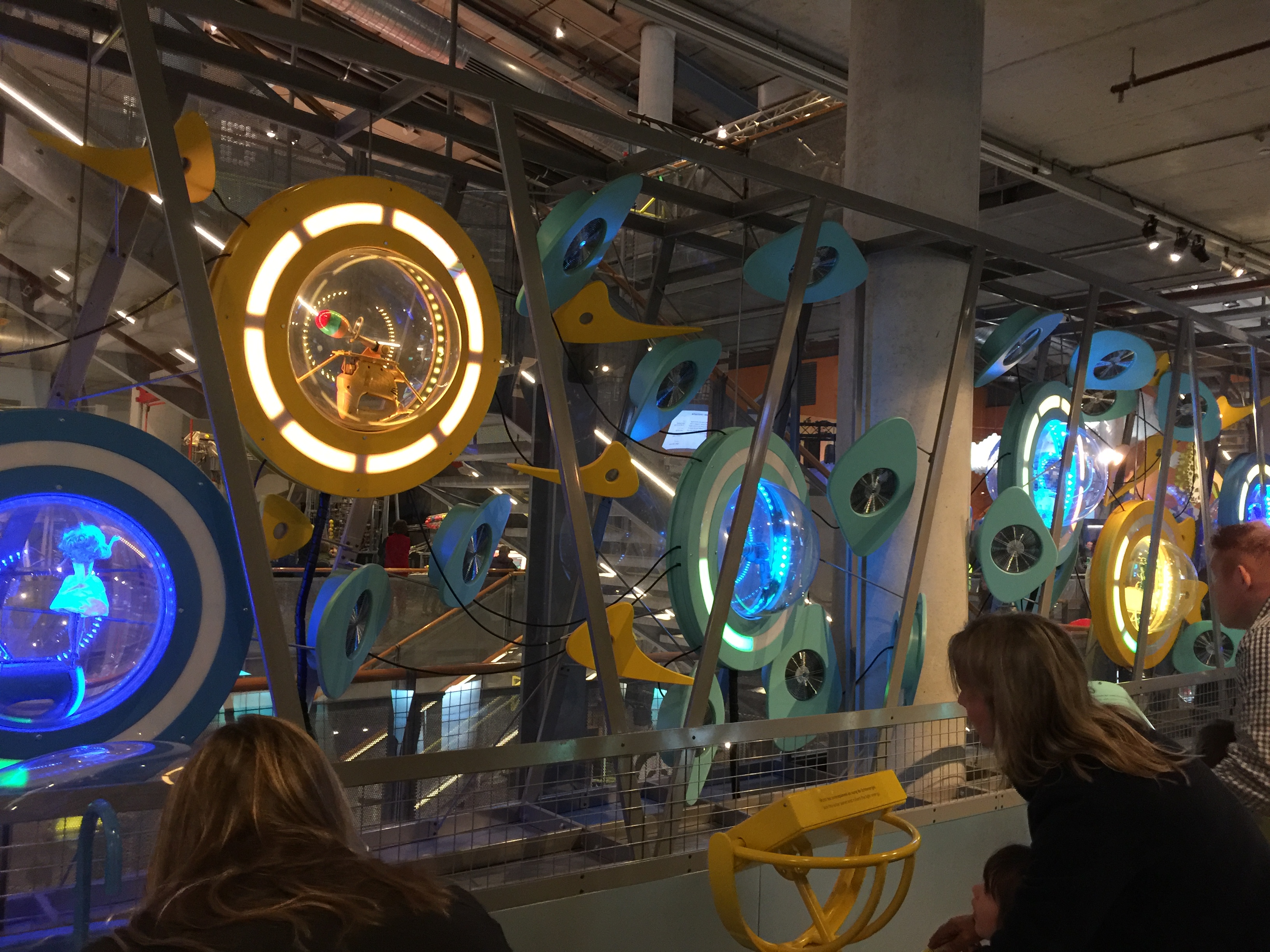 I was not disappointed. This facility has six floors of almost arcade-like exhibits for all age kids from about three to 15. Each floor caters to a progressively older child from enclosing oneself in a soap bubble…