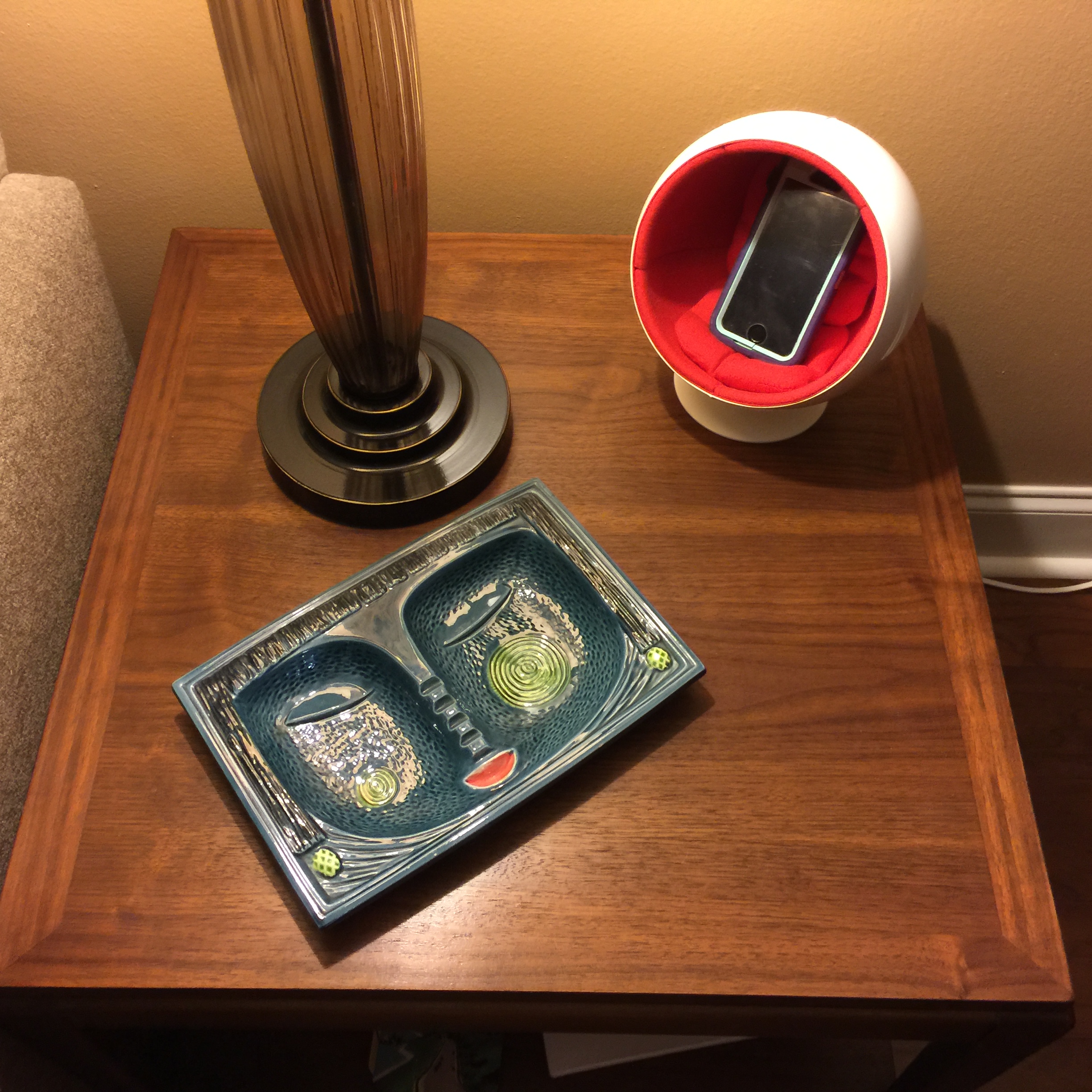 Rather than joining its companion in our great room, this chair I decided to display at our condo on the vintage end table next to our vintage ashtray.