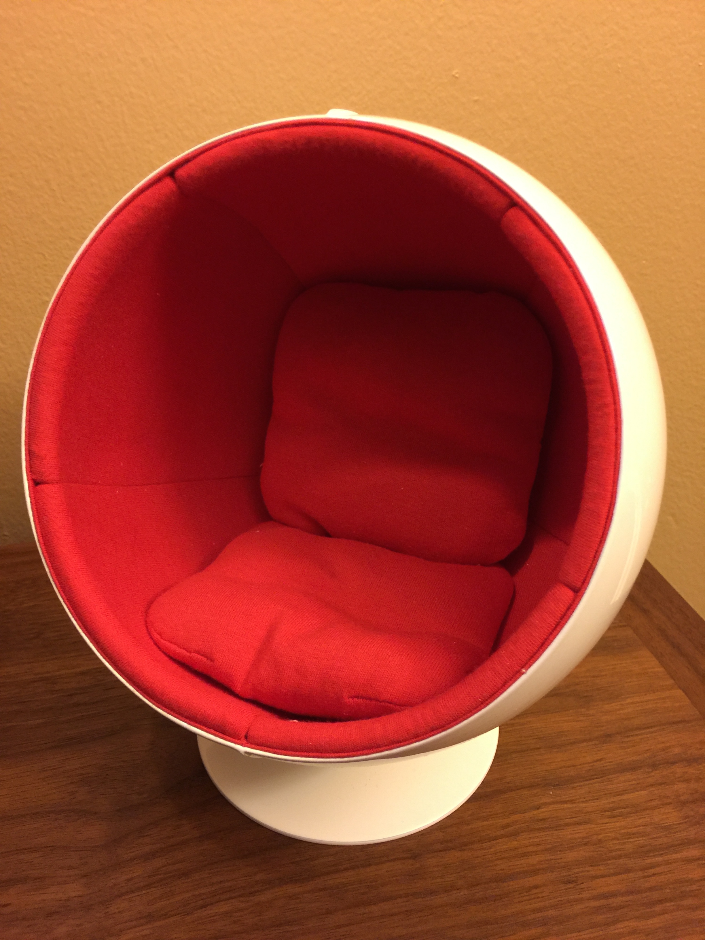 When we visited the library at Oberlin College for my daughter’s graduation, we discovered that that they had these ball chairs for library patrons to lounge in while reading. They were quite comfortable and cocooned the occupant from sound while seated. I later learned that these famous chairs were designed by Eero Aarnio, a Finnish furniture designer, in 1963.