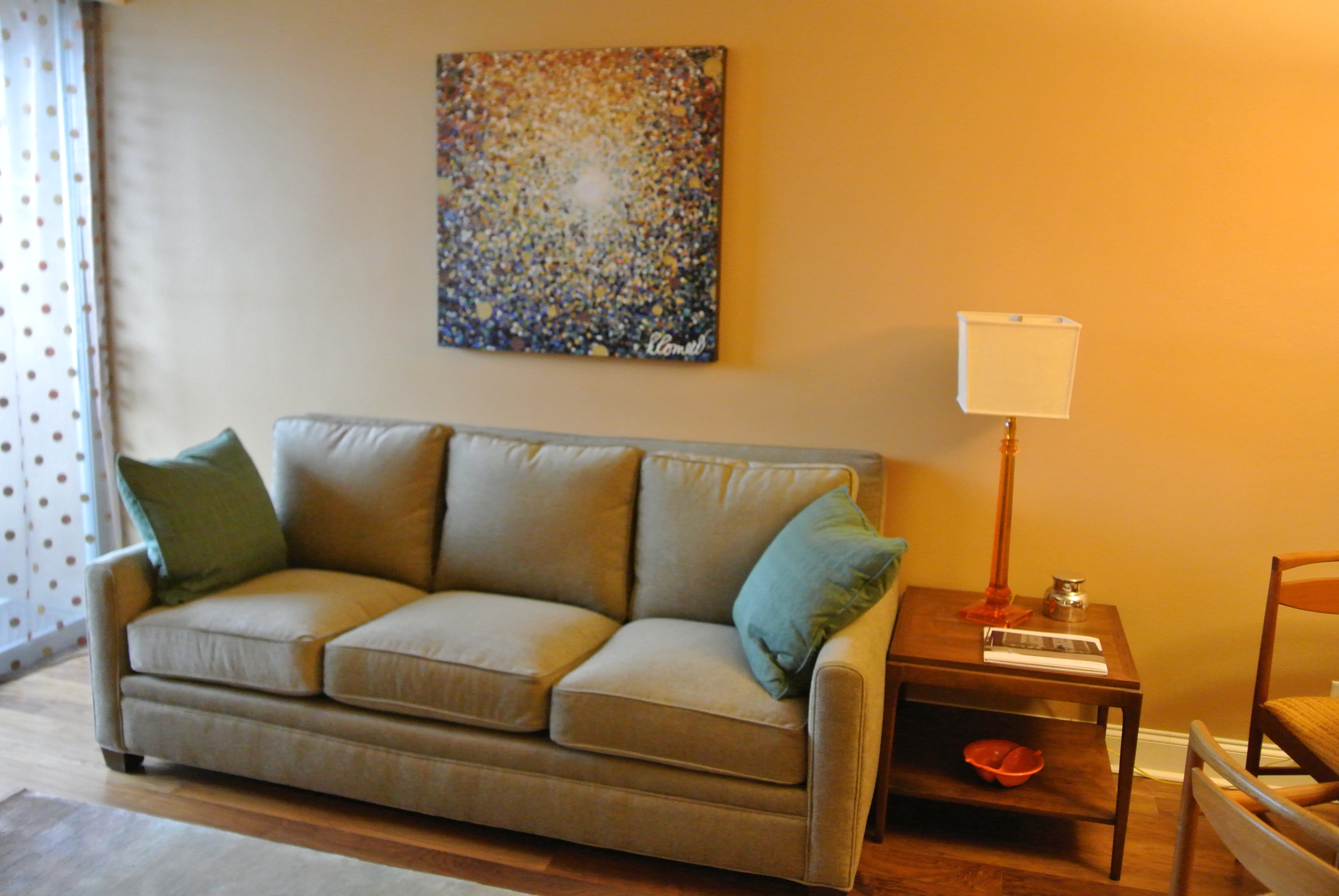 I’ve written before what a wonderful, vacation-like place our condo is and how we have worked at making it a special place. And I absolutely have to give my wife tremendous credit for decorating it with the help of her life-long friend. Whether by strict curatorial discipline or a wonderful vision, I had to agree with my son’s assessment. That is because everything hanging on the walls is an original piece of art and many of the pieces of furniture are vintage mid-century modern, almost one of a kind period pieces that my wife has found on the Internet or purchased at estate sales.