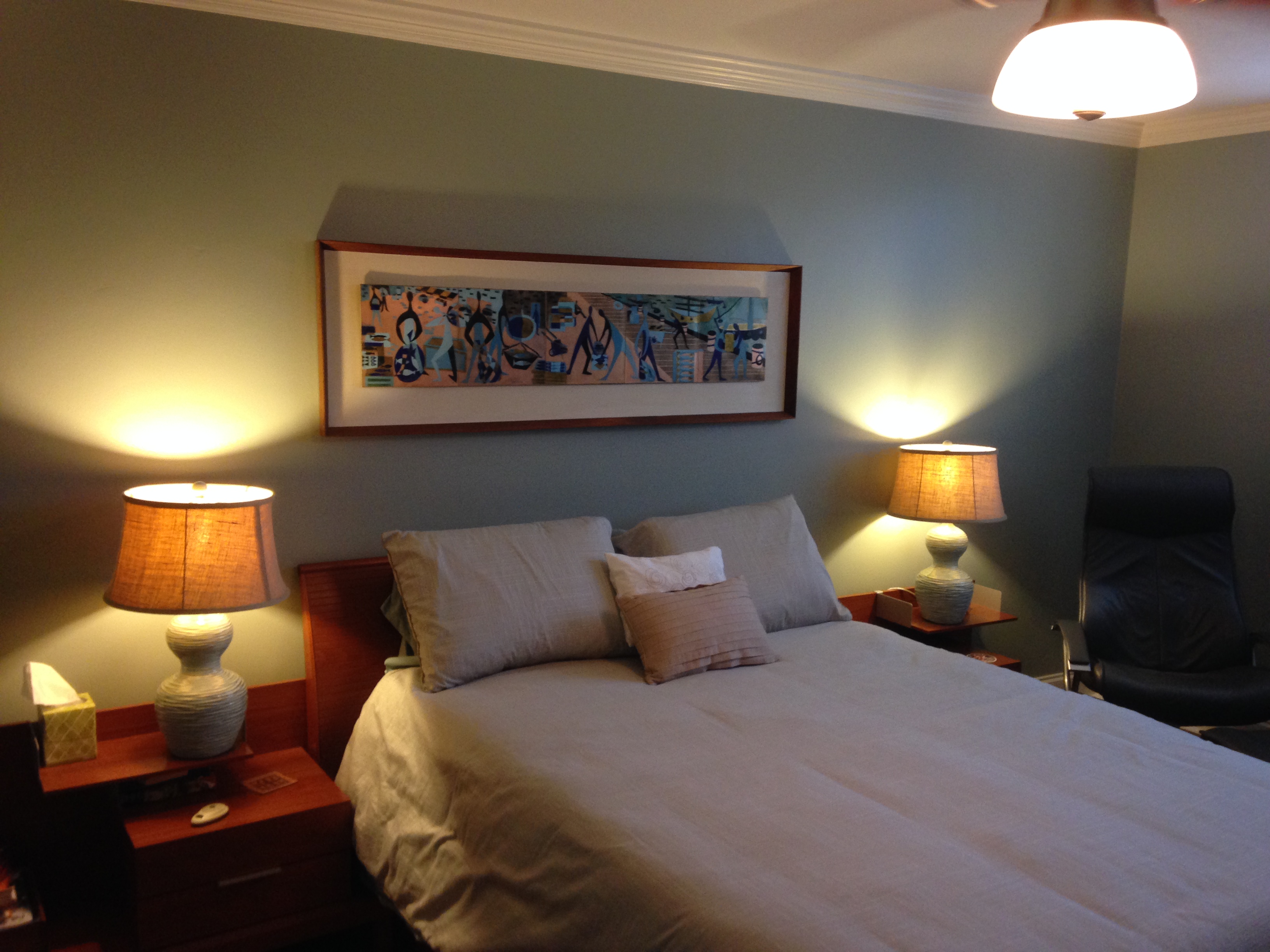 The spot over our bed was also empty until my wife made another successful discovery on the Internet, a tile mural.