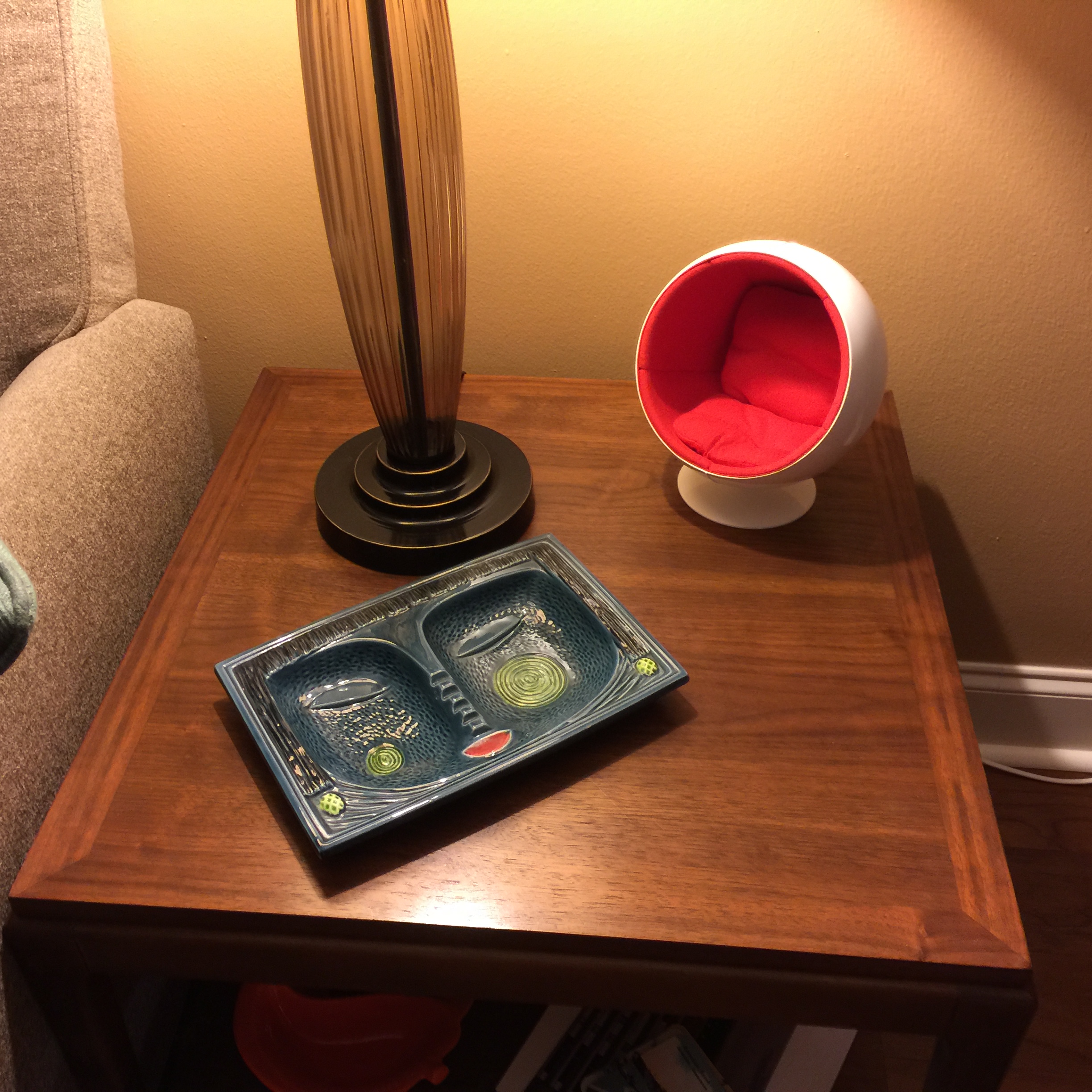 The final piece that I had been wanting to add for some time but had not been willing to spend the money on was a Vitra Design Museum miniature chair to sit on our vintage end table next to the vintage ash tray.