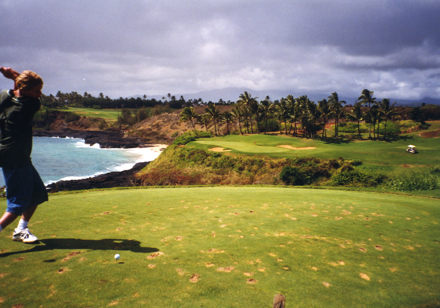 Swinging with all I got…and watching the ball fly into the ocean surf…
