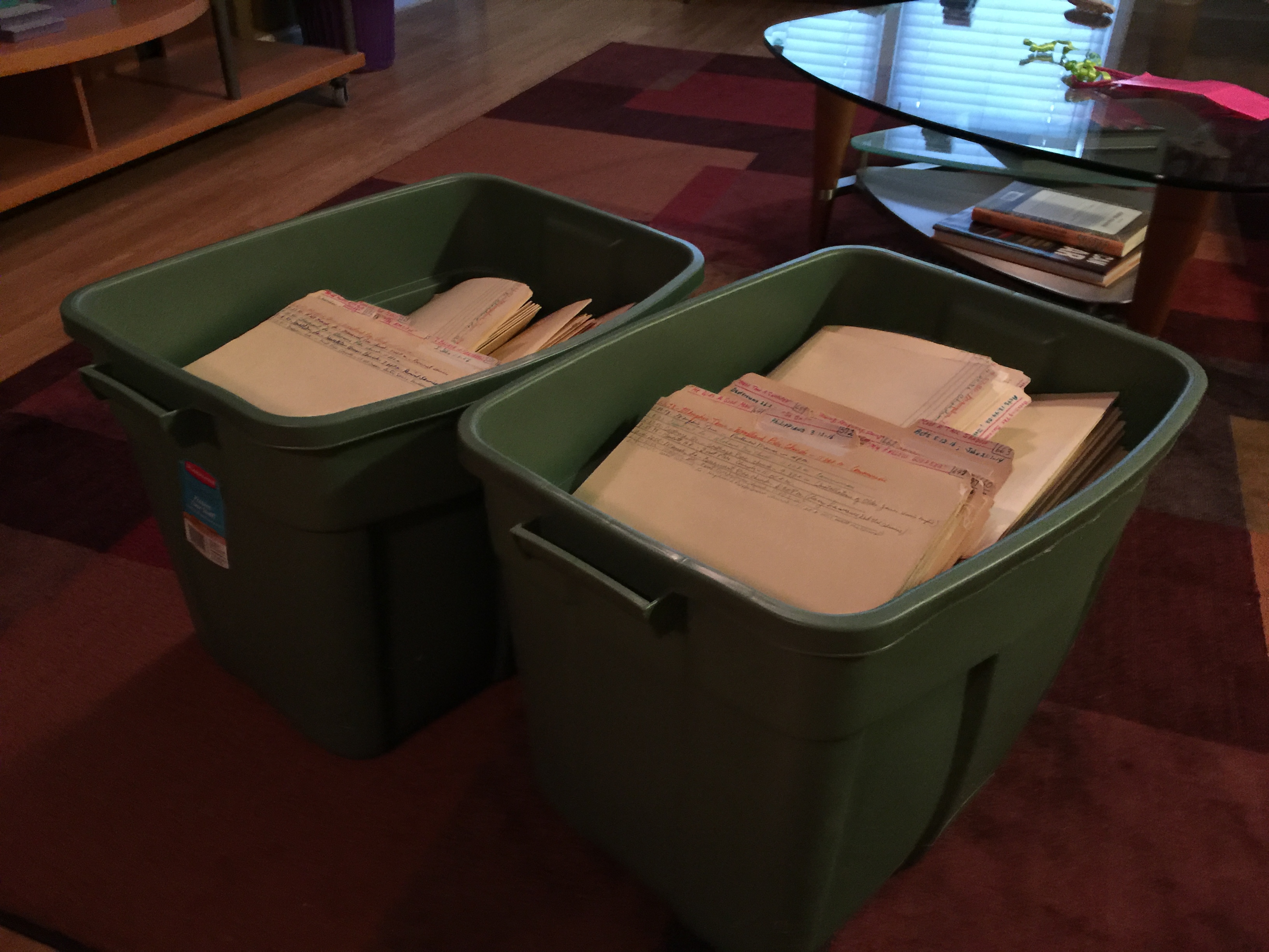 And so my sister and I loaded these three bins, each weighing over 50 pounds, into my car for the ride home.