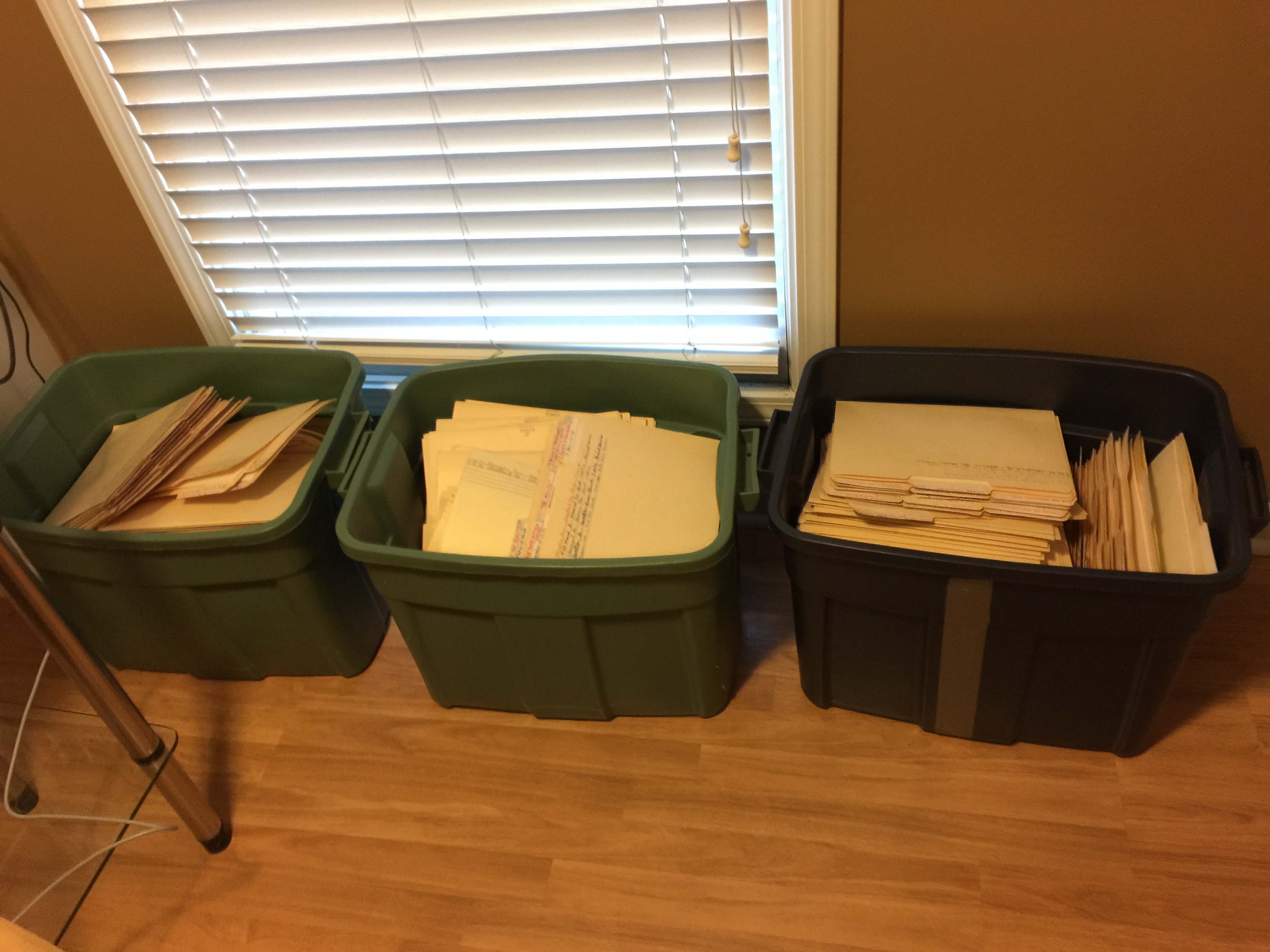 Once I had pulled all the sermon folders from the bins and organized them in increasing numerical order, I had filled five Bankers Boxes.