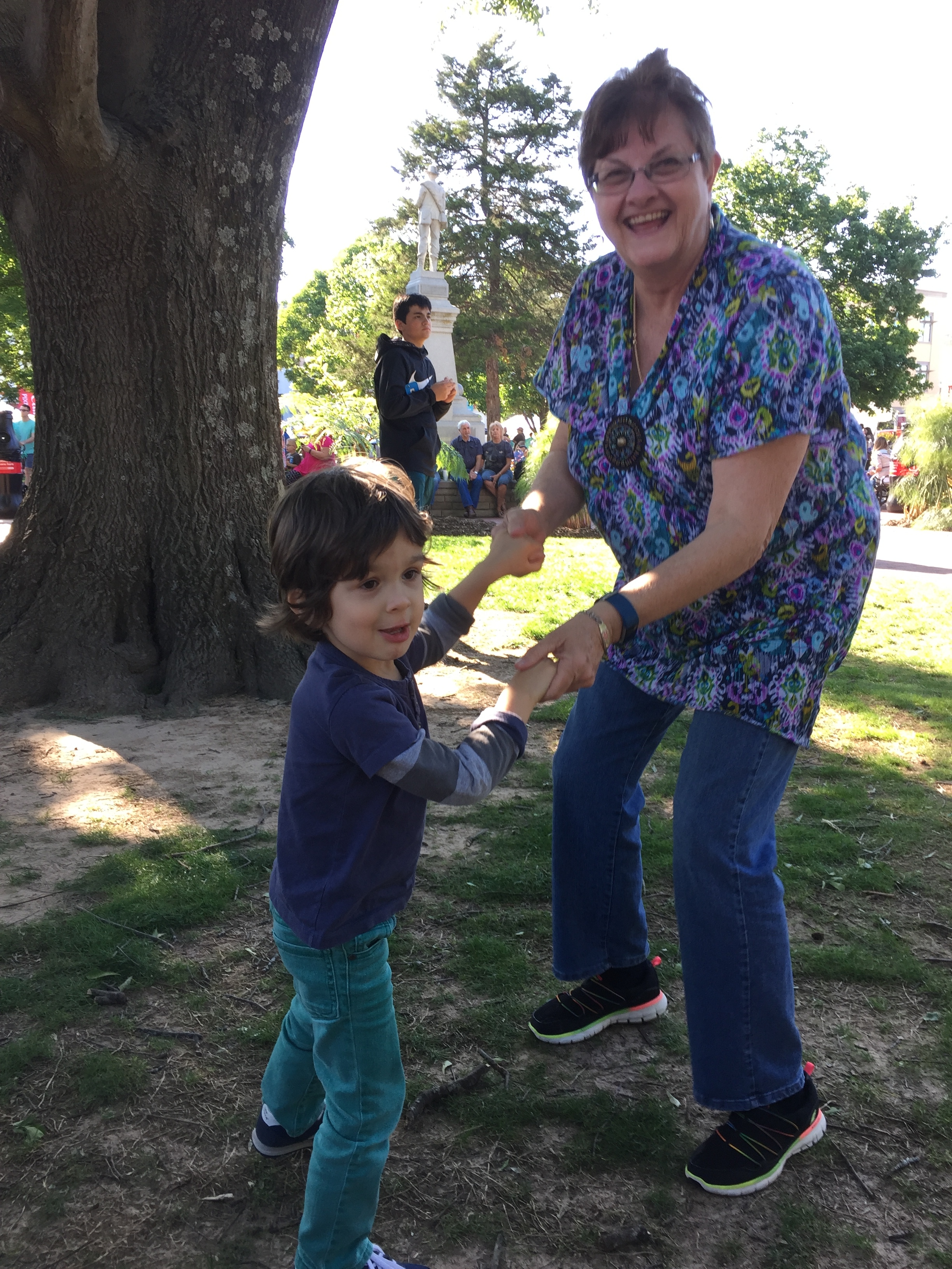 The first day of our SIBSAB also coincided with it being the Bentonville First Friday, which is a monthly outdoor block party on the square with live music. This afforded my sister a chance to dance to the music with her grandson when we ran into him and his mom at the square.