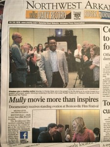 A story of the film along with its BFF award, and a snapshot of Mully made the front page of the local newspaper in a photograph in which my brother also happened to be captured.