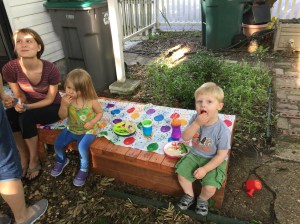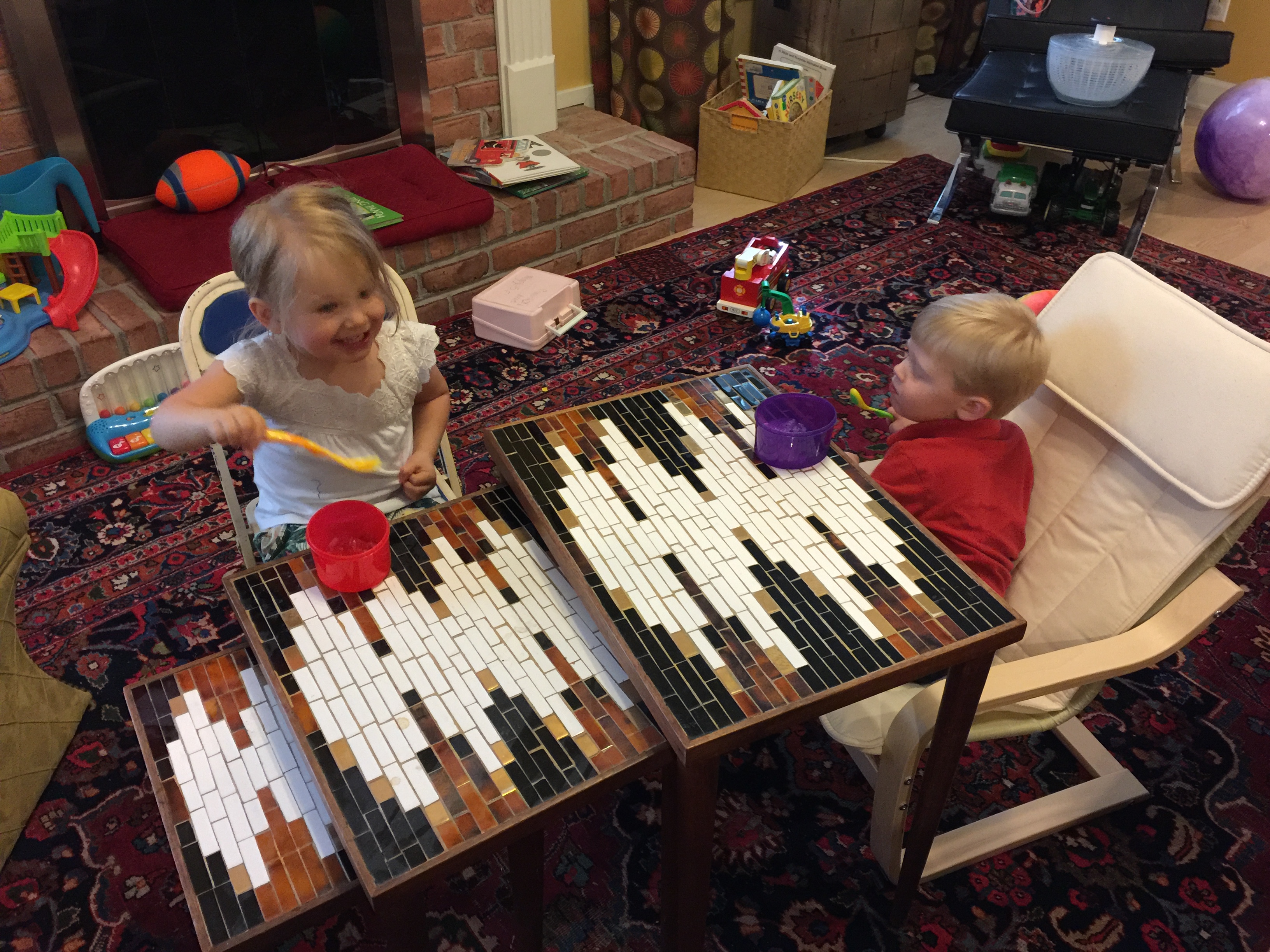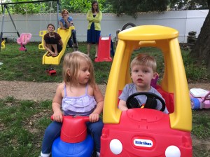 It was a very special time to be with them since my daughter and her family live so far away. And with my granddaughter’s parents out of school for the summer, there were lots of time to get together over the two weeks so the two cousins could play with each other, here seen sharing cups of ice at Mimi’s café.