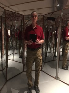 Included were hands-on, accurate replicas of many of his inventions that allowed one to explore the insightful creations of the inventor. It was truly amazing to see some of the ideas he came up with that pre-dated actual inventions by hundreds of years (think flying machines, gliders, and mechanized rolling wagons). One exhibit was of an unique 8-sided mirrored booth that allowed viewers a 360-degree view of themselves, reminding me of a house of mirrors at a fair.