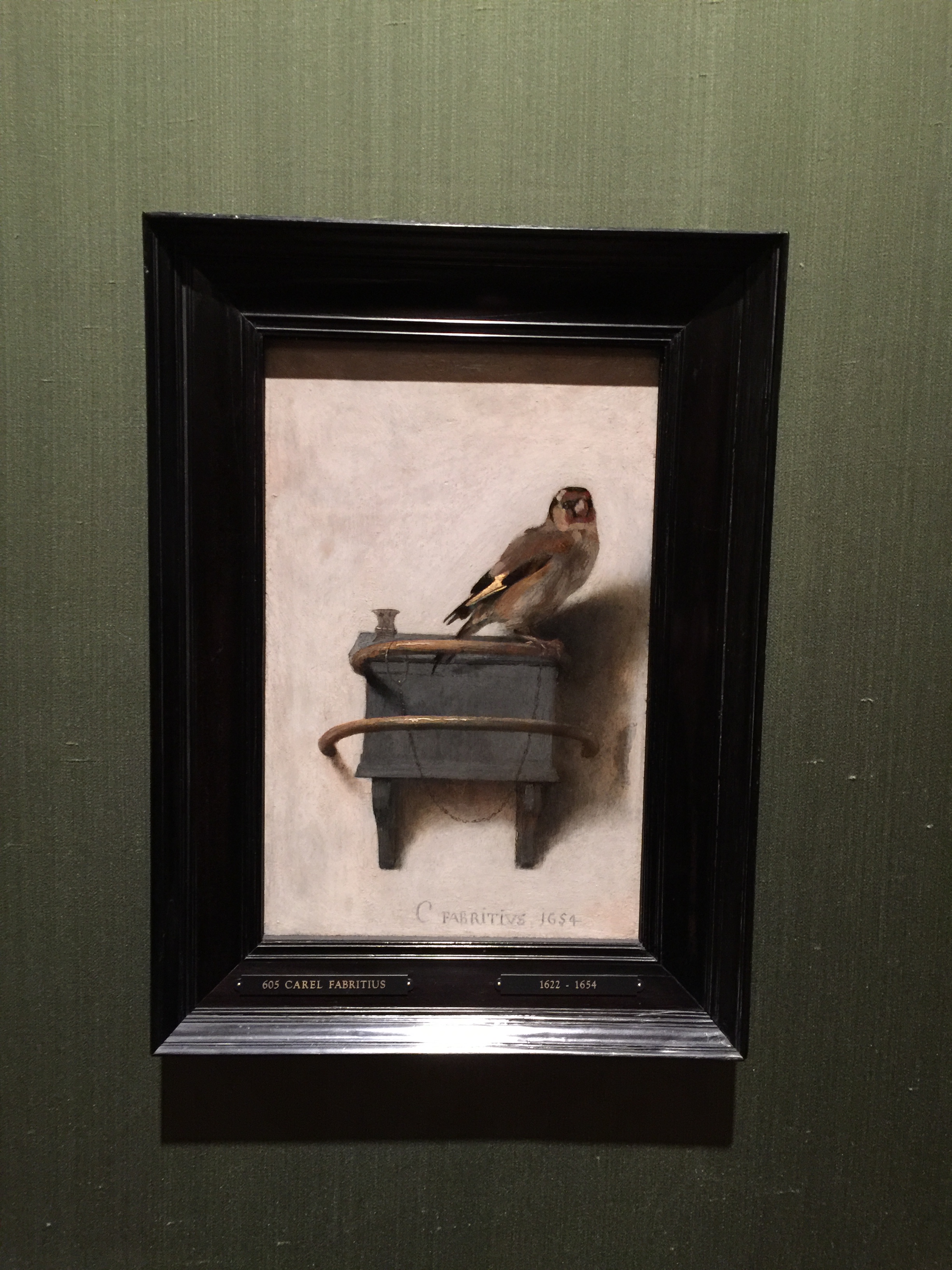But my most exciting discovery of the exhibits was this small painting by Carel Fabritius, entitled the Goldfinch.