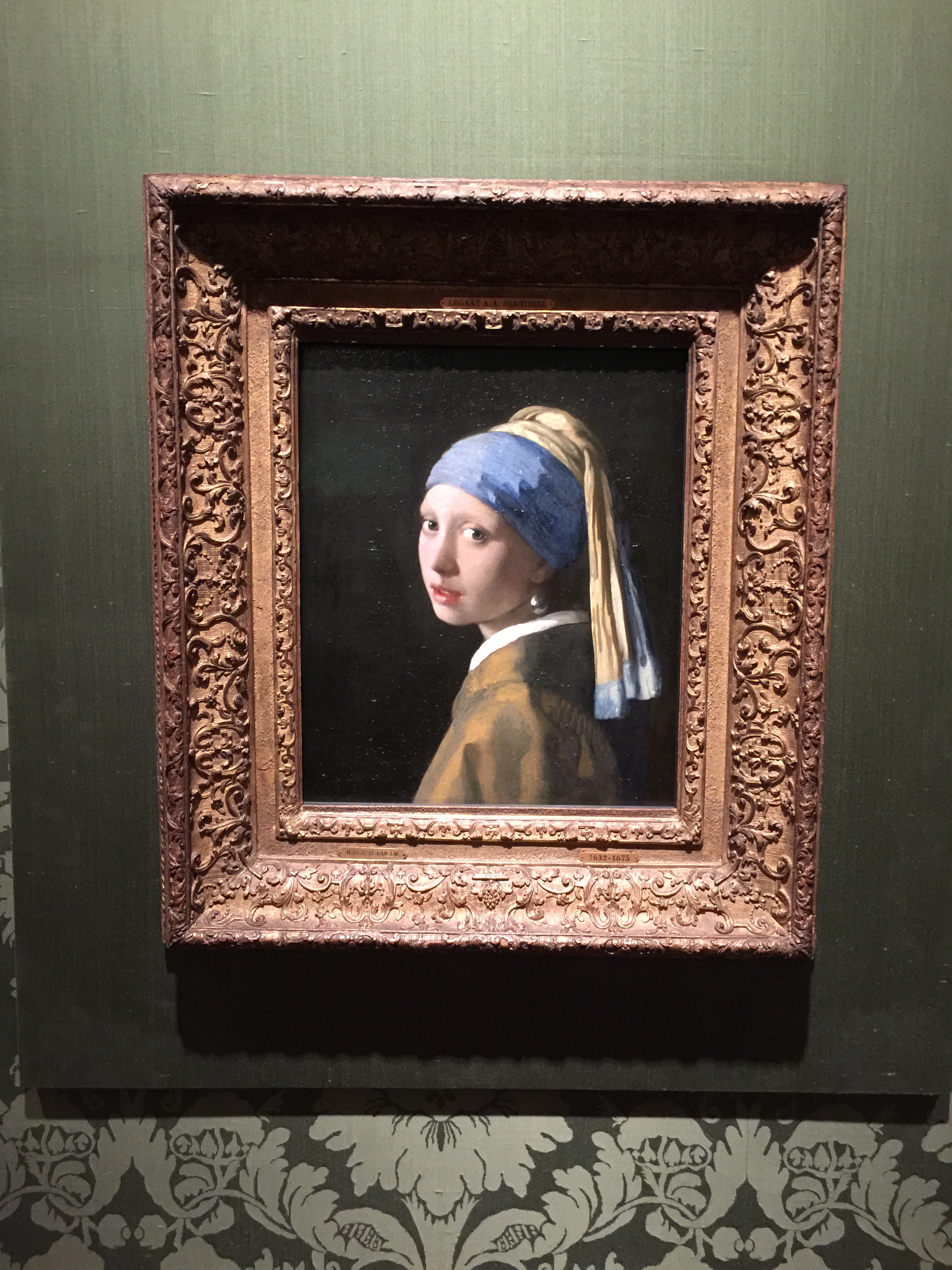 I knew this painting by Vermeer, probably his most famous, was a part of the collection and so anticipated discovering it for some time as I strolled through the galleries. When I found it, I examined it from several different perspectives and wherever I was, it appeared as if the girl had her eyes directly on me. Even when I glanced back from the door leading to the next room, she hauntingly seemed to follow me.