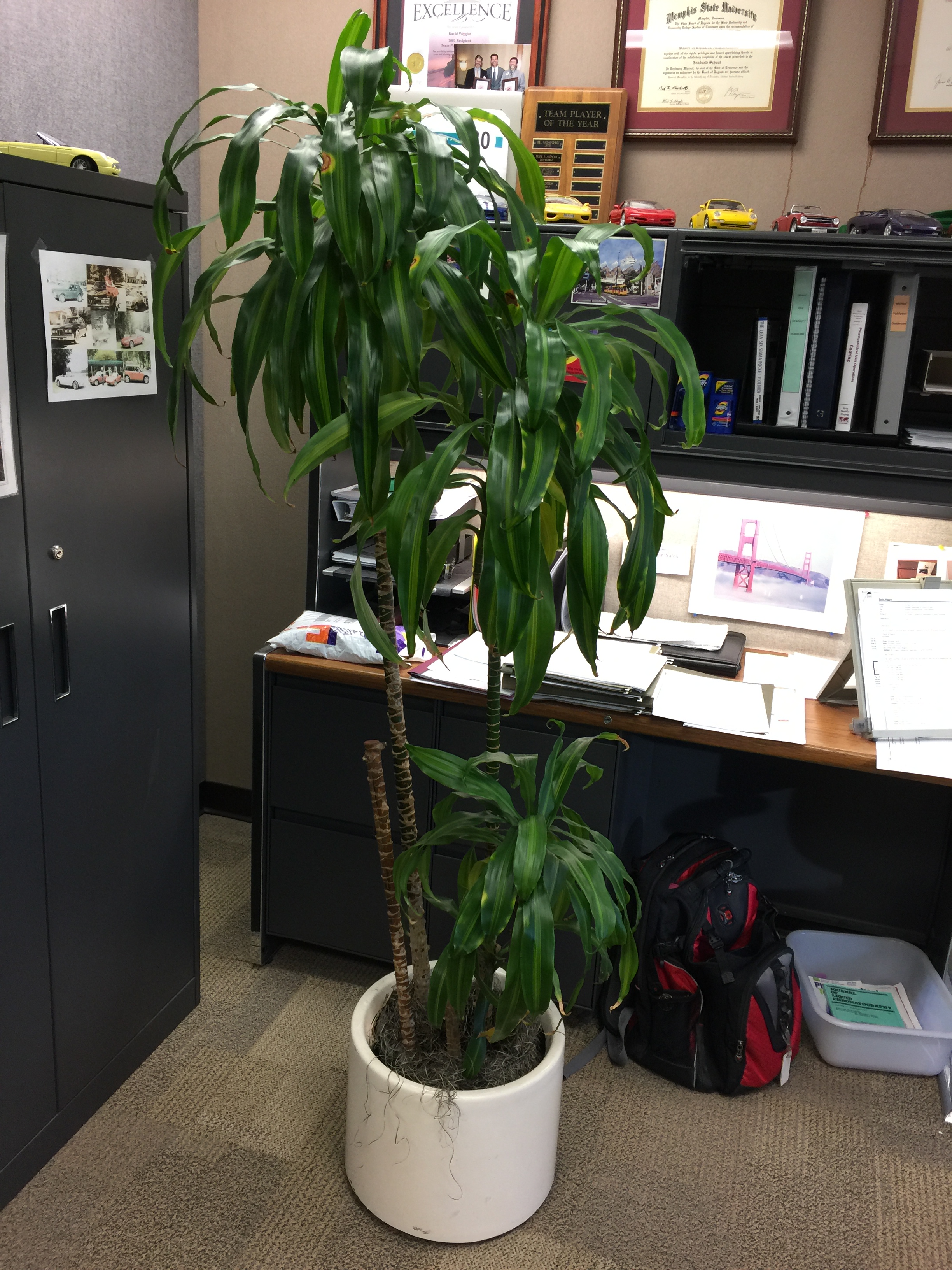 With my work site closing, it was determined that certain assets would not be relocated out of state to where our operations were being consolidated with an existing company site. As a result, employees were encouraged to take home the plants located throughout our facility. I found this nice one to take home.