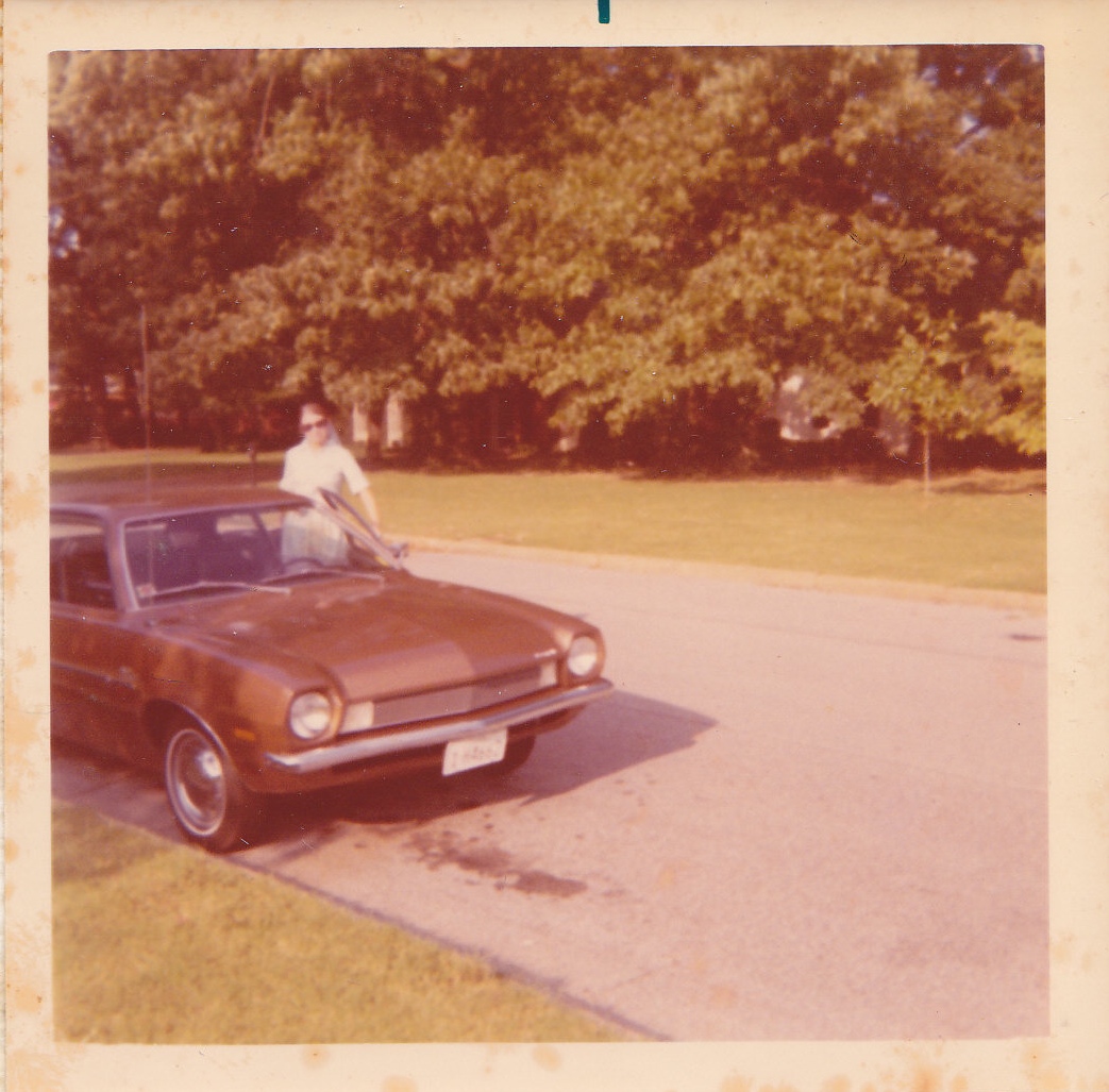 And this picture is special of my sister with her first car, significant probably much more to me than my sister as she let me learn how to drive a stick shift in her new car.