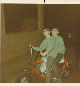 …one of my brother and I when we bought a mini bike that preceded the motorcycle. With our paper route earnings, we together purchased it when we lived in that small town and would ride it up and down our semi-rural street.