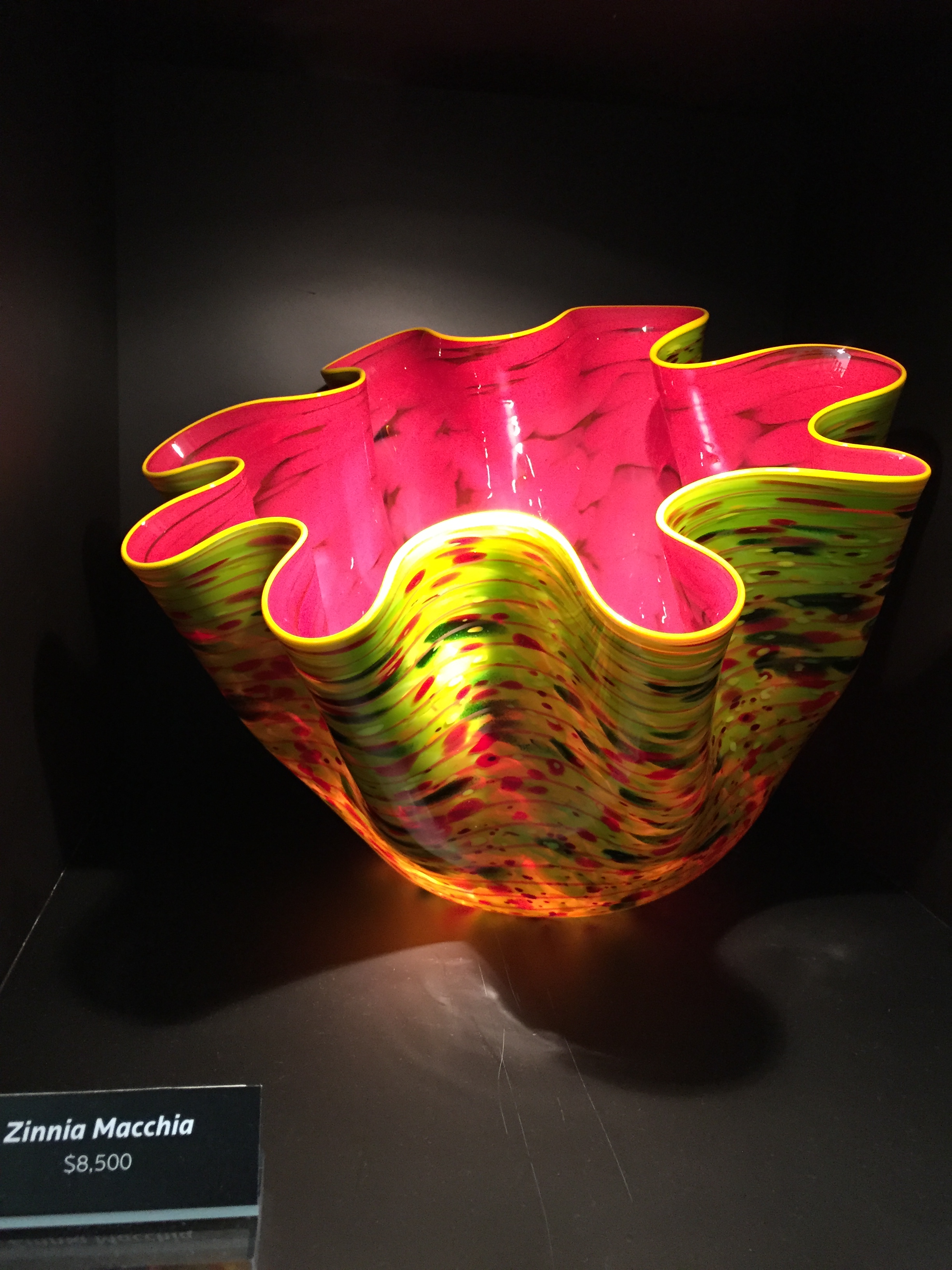 Naturally in the museum gift shop, they had Chihuly pieces for sale, smaller than the ones I remembered seeing in Oklahoma, but much more reasonably priced, although still above my price range even for this one, my favorite.