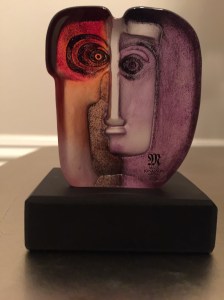 This became my favorite piece of glass art that we owned and it enjoyed a prominent location at our home first and then at our condo.