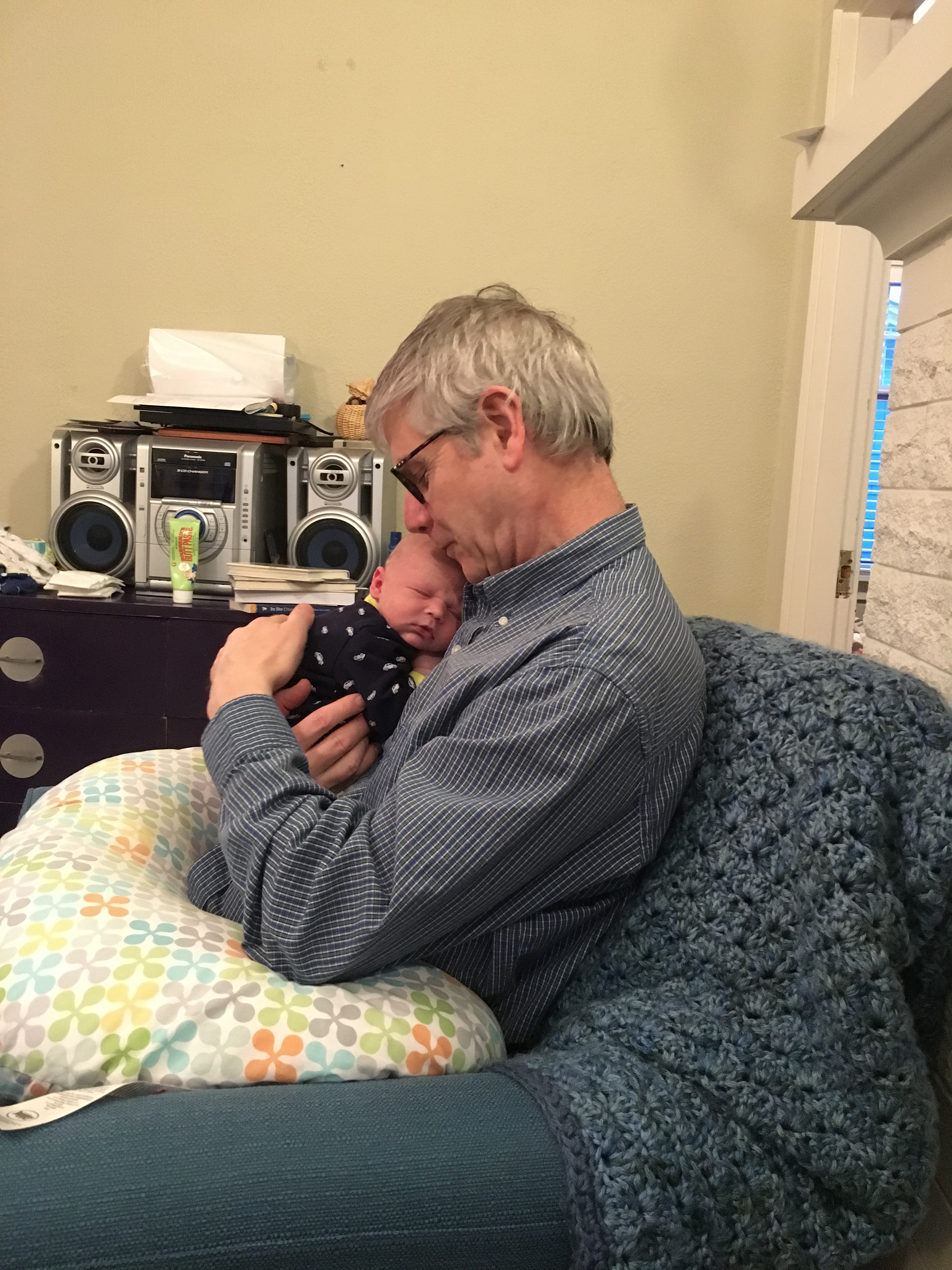 My wife actually got to hold him on the day he was born. To provide the greatest amount of help for our daughter and son-in-law, rather than travelling together, we split our trips to visit them separately so that one of us could continue to provide our grandparent support for our oldest granddaughter back in Memphis.