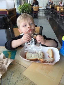In transit, my feelings were put on hold as I focused my attention on my journey to the airport, although sensing a bit of joy while passing the airplane museum where much fun had been had by all. But once I had made my way to my gate for my upcoming flight, my feelings and tears unleashed as I typed these words awaiting my departure. But my tears were soon replaced with a peaceful happiness when I remembered this was just my first departure. Just like with our multitude of trips going to see our first grandson, there would be many, many more trips to spend time with this little family—my daughter’s family—with more fun-filled respites at the play café, the airplane museum and many more exciting adventures!